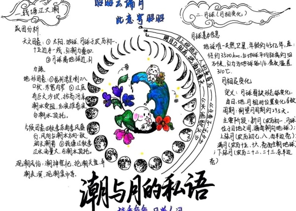 潮汐與月相探究:結(jié)合錢塘江大潮與月相變化制作思維導(dǎo)圖,感受自然之力與人文之美的交融。