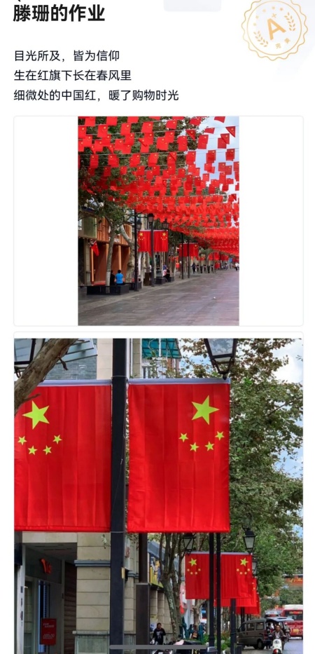 國(guó)慶氛圍記錄:用照片或繪畫記錄國(guó)慶喜慶場(chǎng)景,附文字說明,表達(dá)對(duì)國(guó)家發(fā)展的認(rèn)同與祝福。