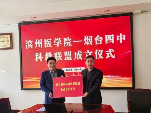 為實現高校與中學教育資源的深度融合與共享,共同培育具有創(chuàng)新精神與科技素養(yǎng)的未來人才,煙臺四中與濱州醫(yī)學院攜手,重磅打造科教聯盟,并于11月19日成功舉辦成立儀式?平搪撁撕灱s儀式在南三樓會議室舉行,濱州醫(yī)學院教授劉洪付與煙臺四中校長李澤明正式簽署合作協(xié)議,明確了雙方在科技教育資源共享、師資培訓、學生實踐活動等多方面的合作內容與方式,標志著兩校的合作邁向新臺階。