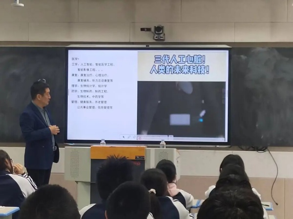 為積極響應國家創(chuàng)新驅動發(fā)展戰(zhàn)略,增強學校學生科技創(chuàng)新意識與實踐能力,煙臺四中還特邀濱州醫(yī)學院劉洪付教授一行于本月19日下午來到學校,開展一場以“醫(yī)路無畏,藥啟新程”為主題的科普活動。講座現場,劉教授圍繞“濱醫(yī)‘兩優(yōu)兩特’故事”“三代人工心臟——人類的未來科技”等主題,用通俗易懂的語言解讀前沿科技,激發(fā)同學們的探索熱情。講座后的問答環(huán)節(jié),同學們踴躍提問,與專家深入交流,現場氛圍熱烈。