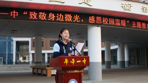 膠東在線12月4日訊(通訊員 鄒蕓霞 實(shí)習(xí)編輯 單煜媛)11月24日,牟平一中舉行以“致敬身邊微光,感恩校園溫暖”為主題的升旗儀式。活動(dòng)由2025級(jí)創(chuàng)新1班劉芷如同學(xué)主持,在莊嚴(yán)的氛圍中,開啟了一場(chǎng)關(guān)于感恩與傳承的青春對(duì)話。