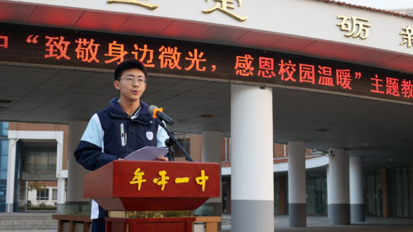 “高中生活的底色,從來都不只有書山題海的拼搏,更有無數(shù)人默默付出的溫情。”學(xué)校主任林修行在主題演講中,用溫潤而有力的話語,引導(dǎo)同學(xué)們發(fā)現(xiàn)藏在校園角落的“微光”。他說,這份微光,是師長(zhǎng)伏案?jìng)湔n的堅(jiān)守、答疑解惑的耐心;是同窗并肩前行的陪伴、困境中的伸手扶持;是食堂師傅熱氣騰騰的飯菜、安保人員日夜巡邏的守護(hù)——這些看似平凡的瞬間,拼湊成了校園最溫暖的模樣。