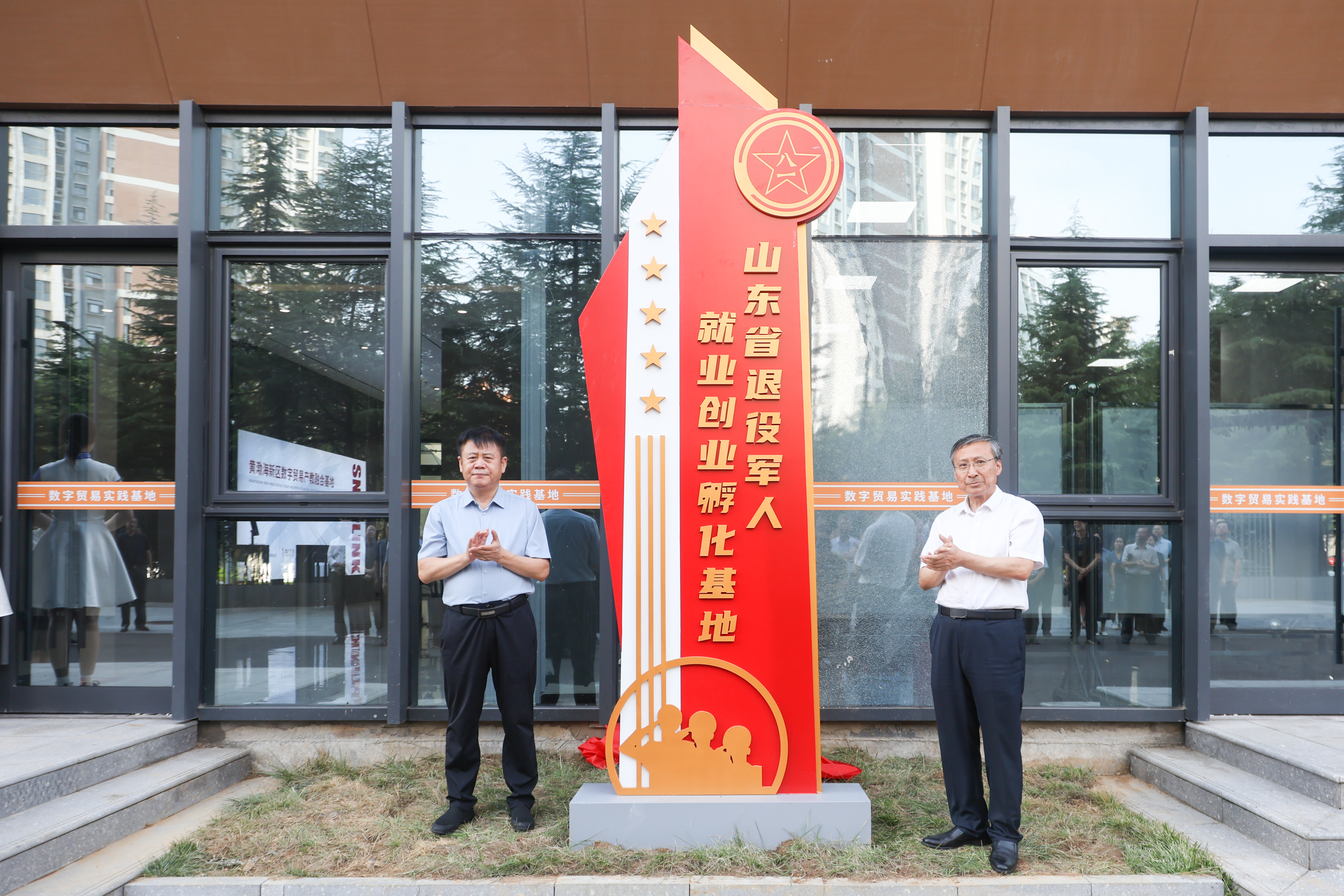 山東省退役軍人事務(wù)廳黨組成員、副廳長高志國,學(xué)院黨委書記馬淑臣共同為山東省退役軍人就業(yè)創(chuàng)業(yè)孵化基地揭牌。