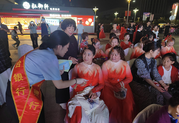 舞臺(tái)上,演員們用飽滿的熱情、整齊的舞步以及十足的精氣神兒贏得了臺(tái)下觀眾的陣陣掌聲。舞臺(tái)之下,煙臺(tái)銀行工作人員則化身社區(qū)“金融管家”。“陌生電話說您中獎(jiǎng)了,千萬別轉(zhuǎn)錢”“有人要幫您‘理財(cái)’賺大錢,先跟孩子商量”,宣傳折頁上防風(fēng)險(xiǎn)話語,被工作人員用嘮家常話的方式傳遞給老人們。