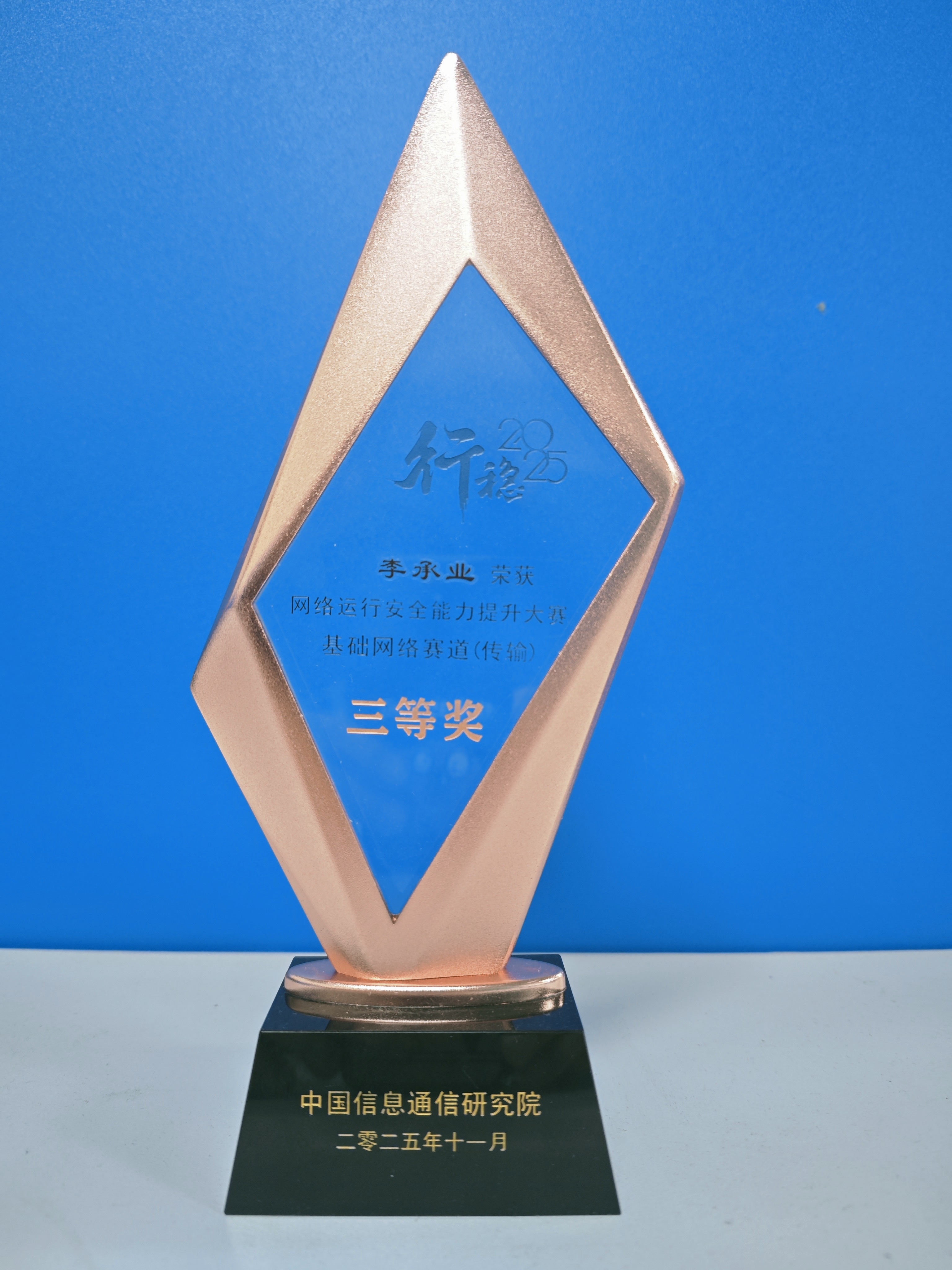 本次大賽由中國信息通信研究院主辦,以“網(wǎng)絡(luò)安全重于泰山,攜手并肩行穩(wěn)致遠(yuǎn)”為主題,吸引了全國基礎(chǔ)電信企業(yè)的技術(shù)精英同臺競技。李承業(yè)長期深耕傳輸網(wǎng)絡(luò)領(lǐng)域,專注于OTN/SDH傳輸網(wǎng)絡(luò)架構(gòu)優(yōu)化、設(shè)備運(yùn)維及安全防護(hù)等工作,曾牽頭完成多項(xiàng)區(qū)域傳輸網(wǎng)絡(luò)升級改造任務(wù)。在日常工作中,他積極探索技術(shù)創(chuàng)新,將AI技術(shù)融入運(yùn)維流程,構(gòu)建起“智能預(yù)警-快速響應(yīng)-閉環(huán)復(fù)盤”的防護(hù)機(jī)制,有力保障了重大活動(dòng)與極端天氣下的網(wǎng)絡(luò)穩(wěn)定運(yùn)行。