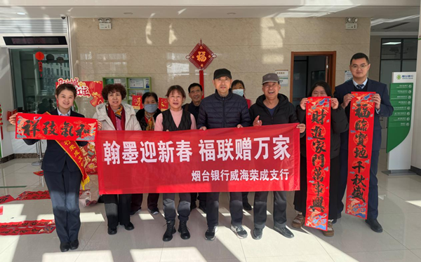 煙臺(tái)銀行威海分行的新春送;顒(dòng)同樣熱鬧,威海榮成支行聯(lián)合三環(huán)社區(qū)黨委,邀請(qǐng)社區(qū)老干部書法愛(ài)好者現(xiàn)場(chǎng)創(chuàng)作,一句句貼合馬年的美好祝愿躍然紙上,為辦理業(yè)務(wù)的客戶送上專屬新春祝福;威海文登支行攜手文登區(qū)書法協(xié)會(huì)打造的寫春聯(lián)送;顒(dòng),更是吸引了周邊社區(qū)居民紛紛前來(lái),大家捧福而歸,讓福氣走進(jìn)千家萬(wàn)戶。
