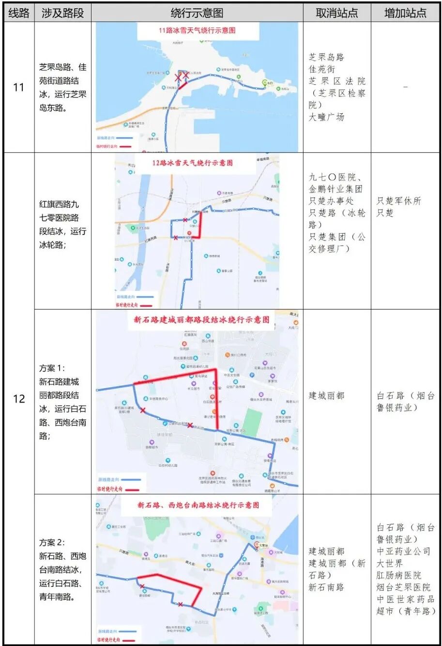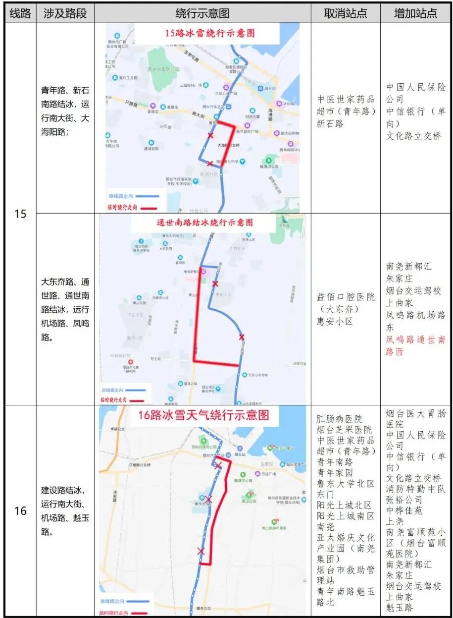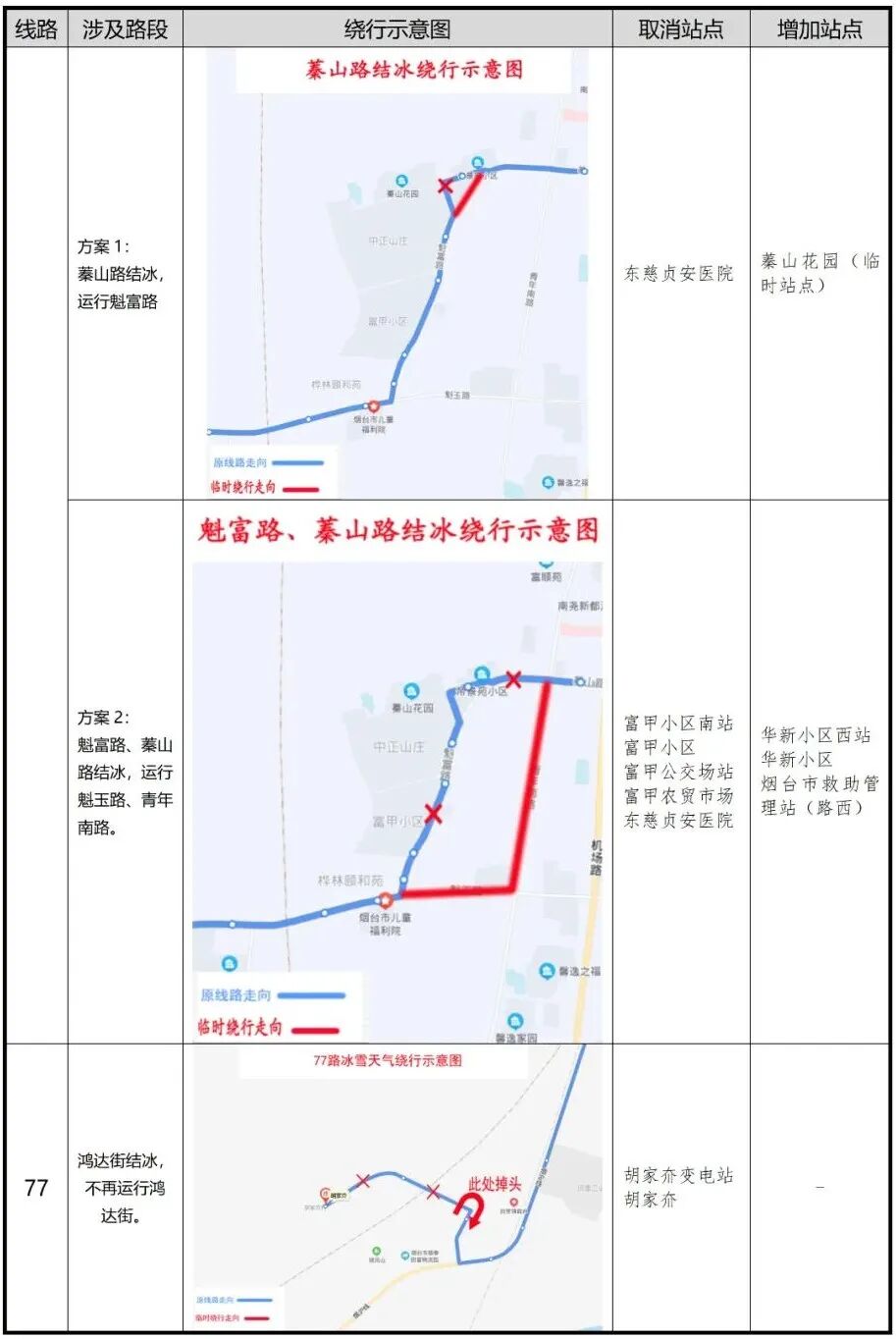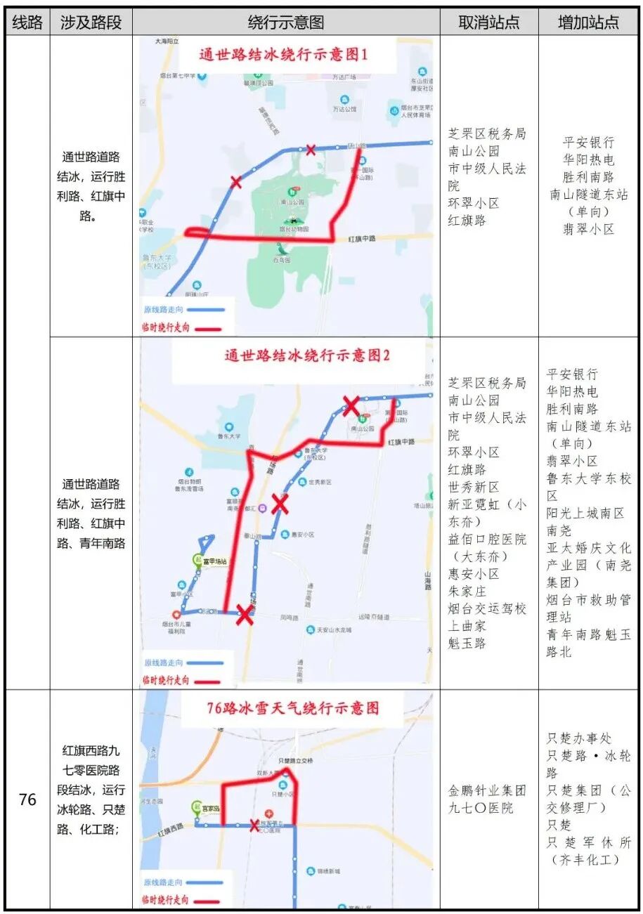 據(jù)市氣象臺(tái)報(bào)道,受強(qiáng)冷空氣影響,煙臺(tái)11月7日(星期日)至9日(星期二)將出現(xiàn)一次寒潮天氣,伴有強(qiáng)降溫、大風(fēng)和雨雪天氣。相信廣大市民已經(jīng)注意到立冬節(jié)氣跟寒潮趕一塊了,而11月8月(星期一)早晨最低氣溫可達(dá)-1℃~0℃,如遇雨雪天氣,勢(shì)必給廣大市民早高峰出行造成不便。為方便市民出行,煙臺(tái)公交總結(jié)了各線路歷年來(lái)應(yīng)對(duì)道路積雪、結(jié)冰有效舉措,結(jié)合行業(yè)特點(diǎn)和城市道路提升實(shí)際,制定2021年冰雪繞行預(yù)案(首版),并根據(jù)降雪強(qiáng)度啟用適當(dāng)?shù)木路繞行方案。本方案共涉及121條線路,其中87條適時(shí)臨時(shí)繞行,34條視情臨時(shí)停運(yùn),請(qǐng)廣大市民及時(shí)關(guān)注了解,祝您出行順利。