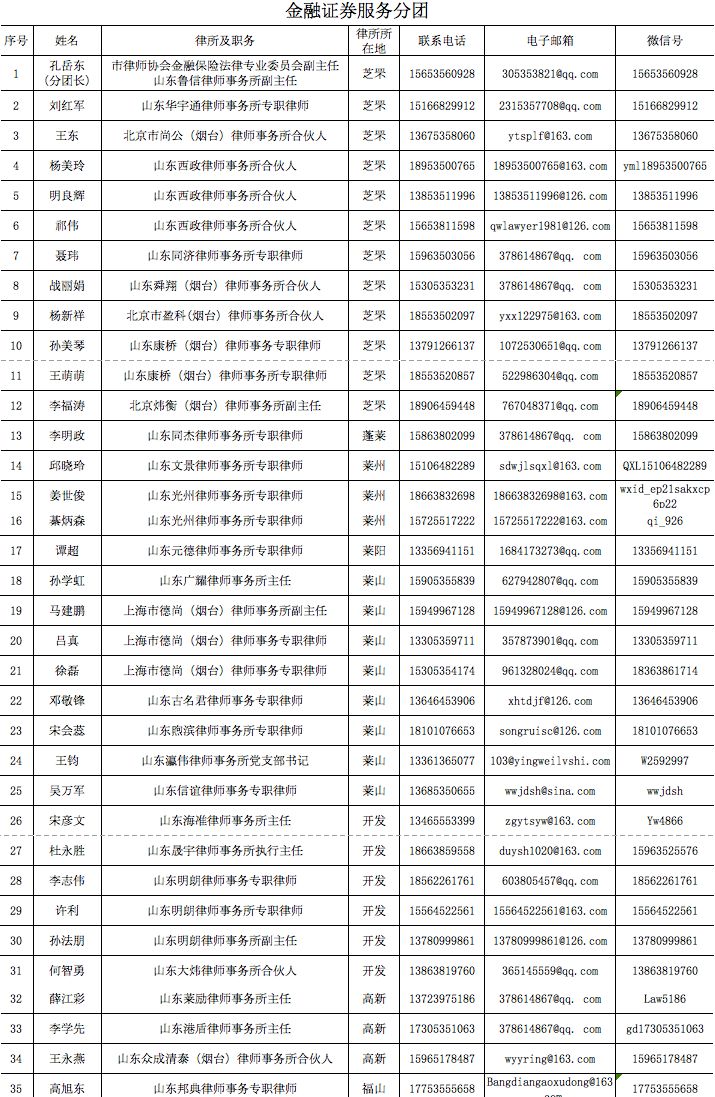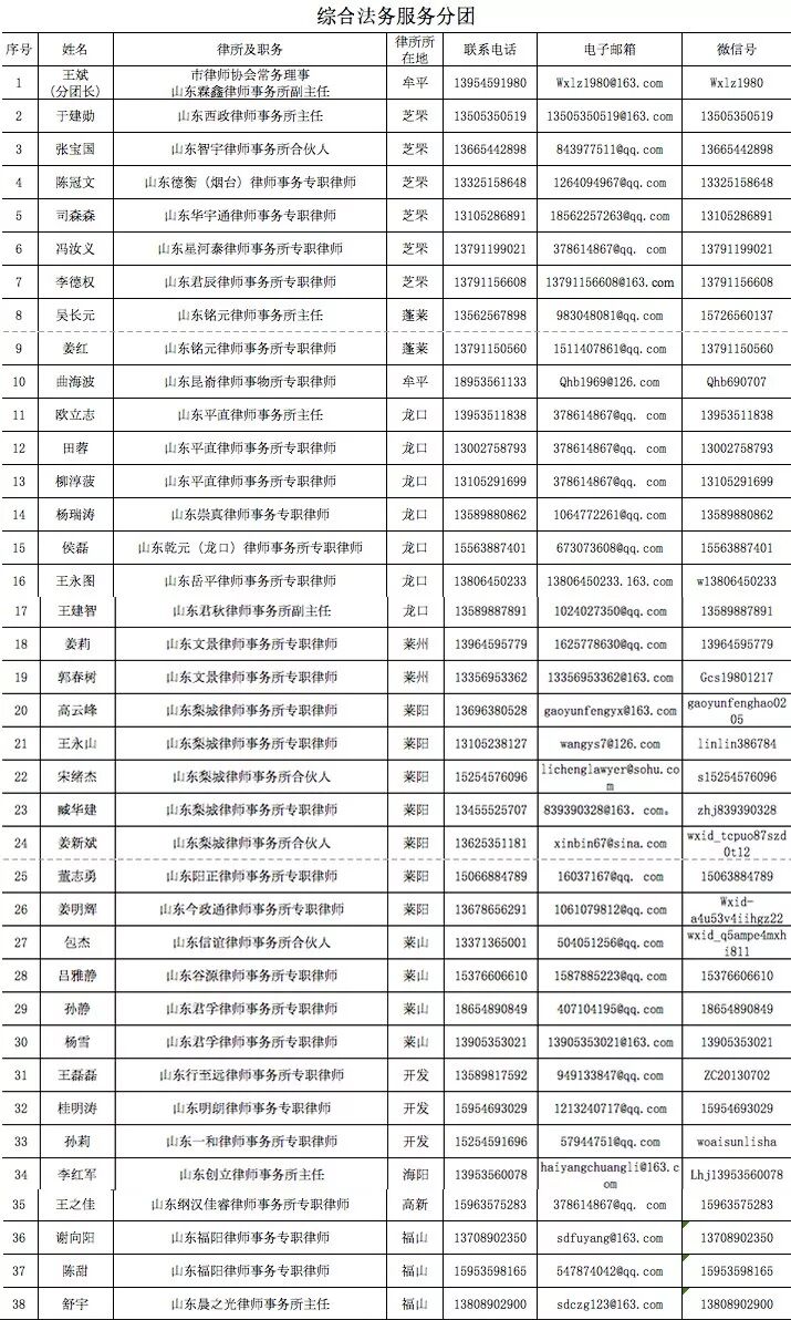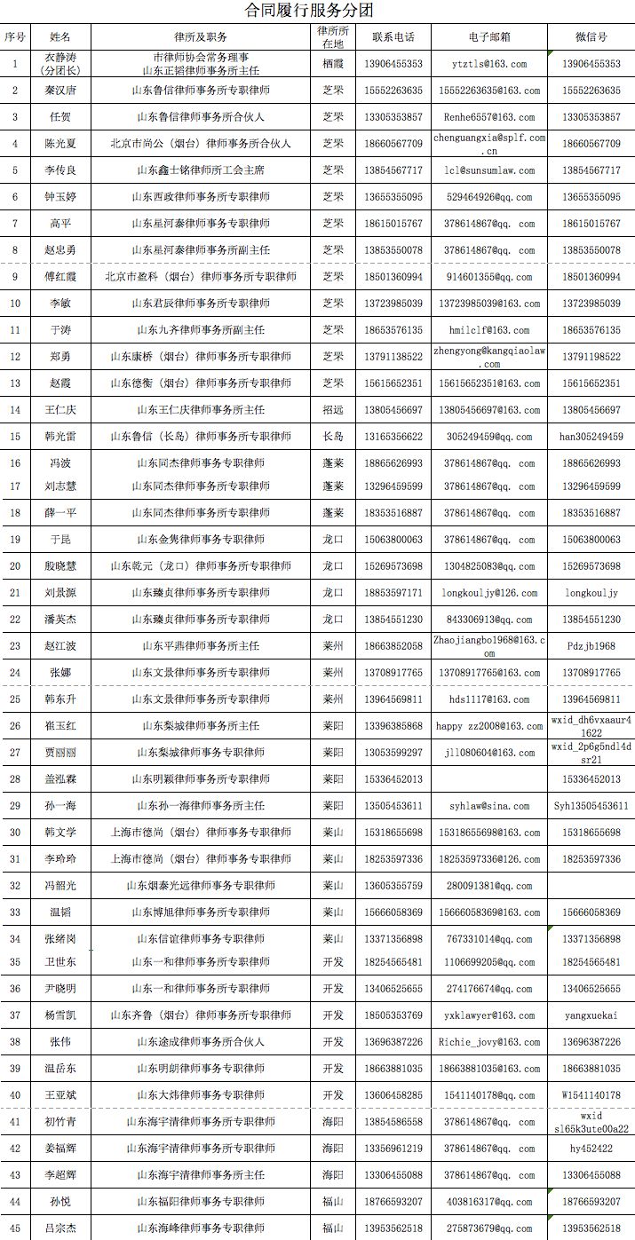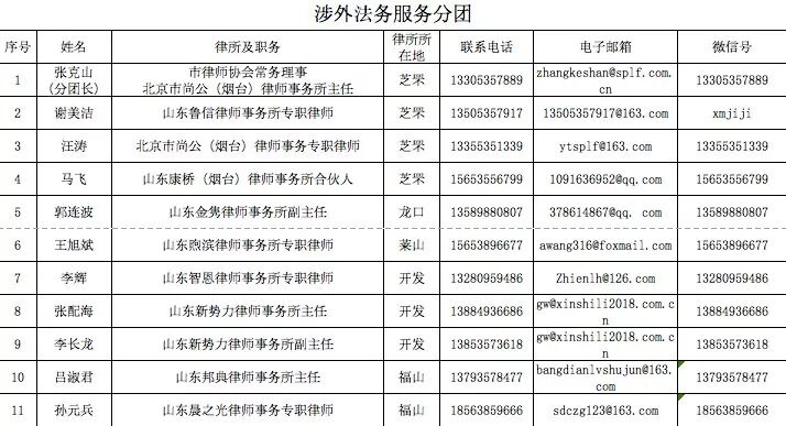 煙臺市疫情防控志愿律師服務(wù)團成員名單如下: