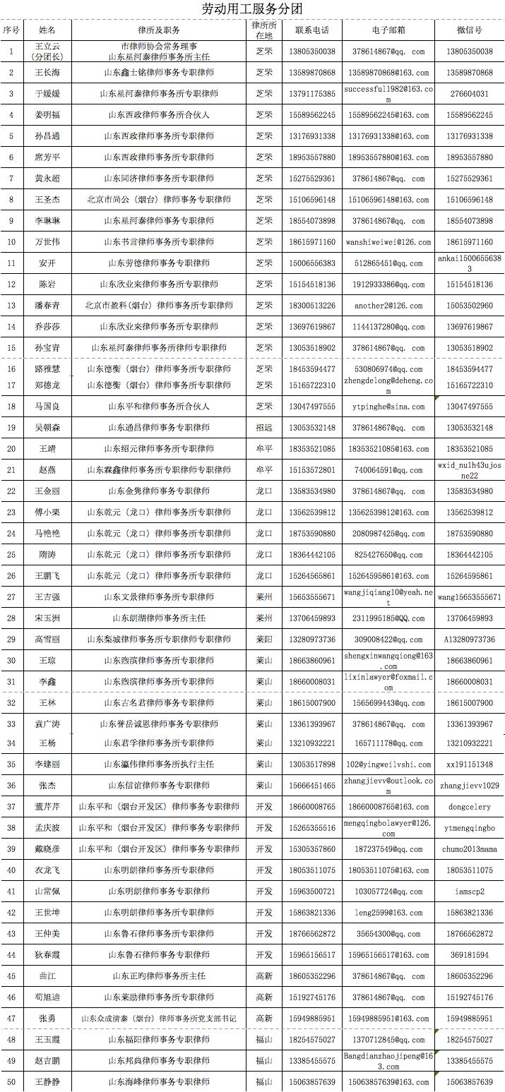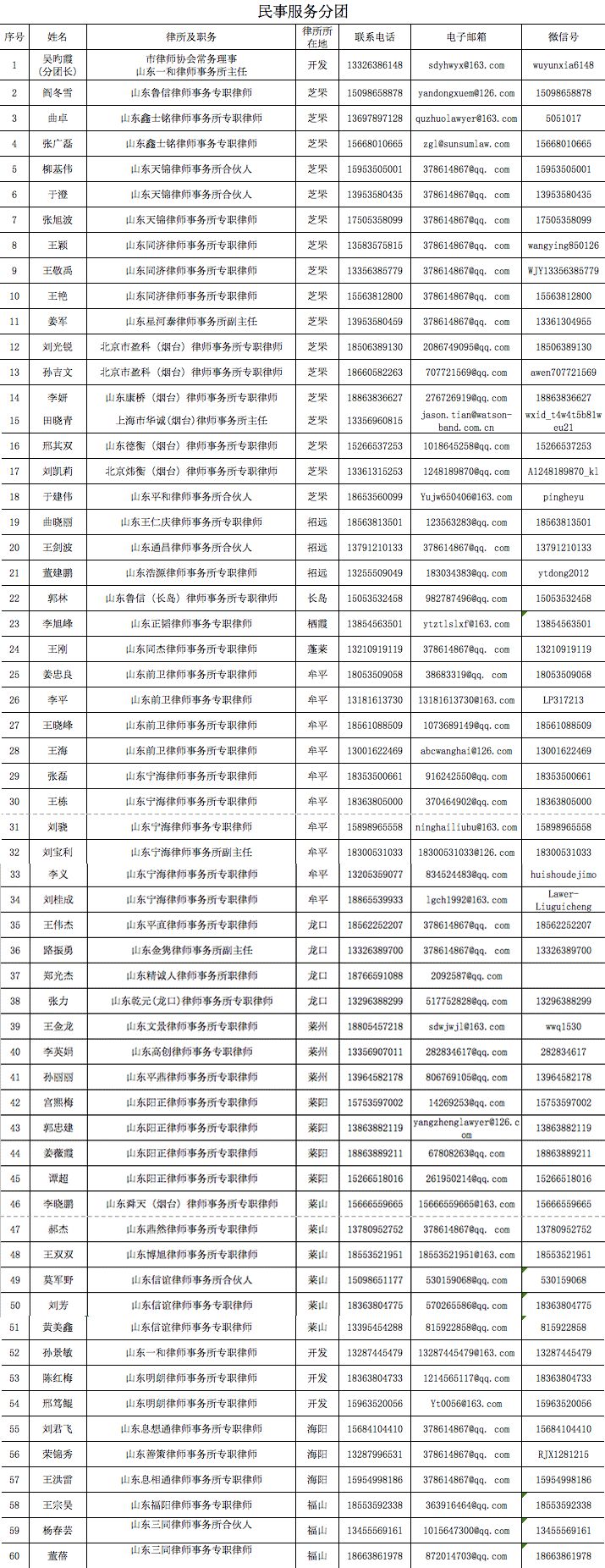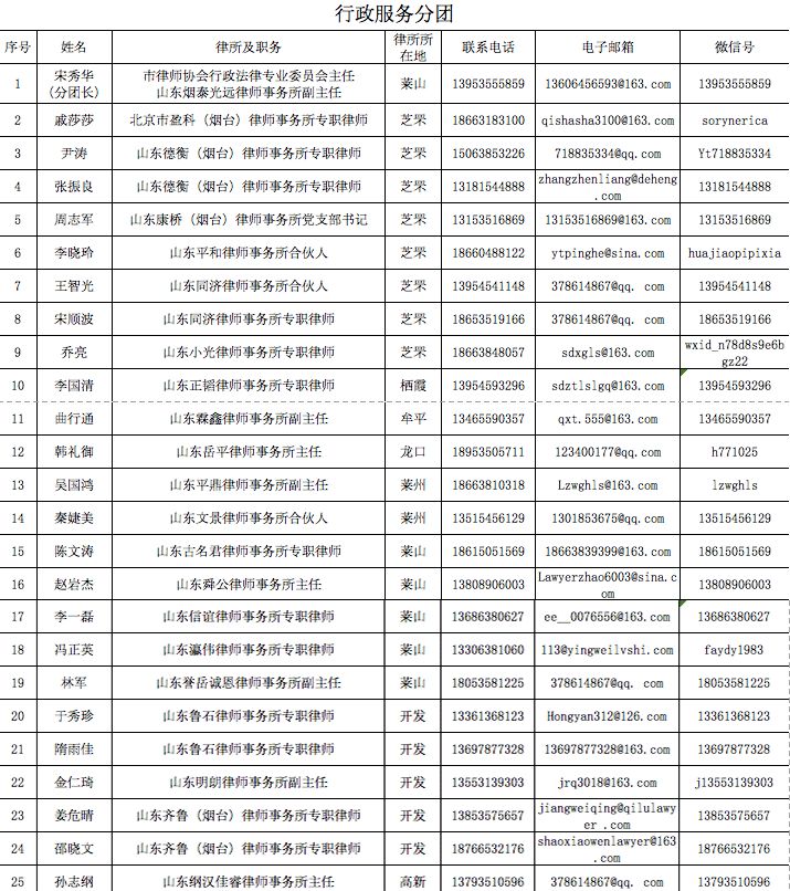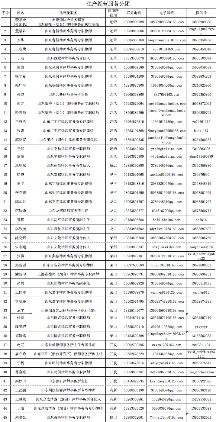 煙臺市疫情防控志愿律師服務(wù)團成員名單如下: