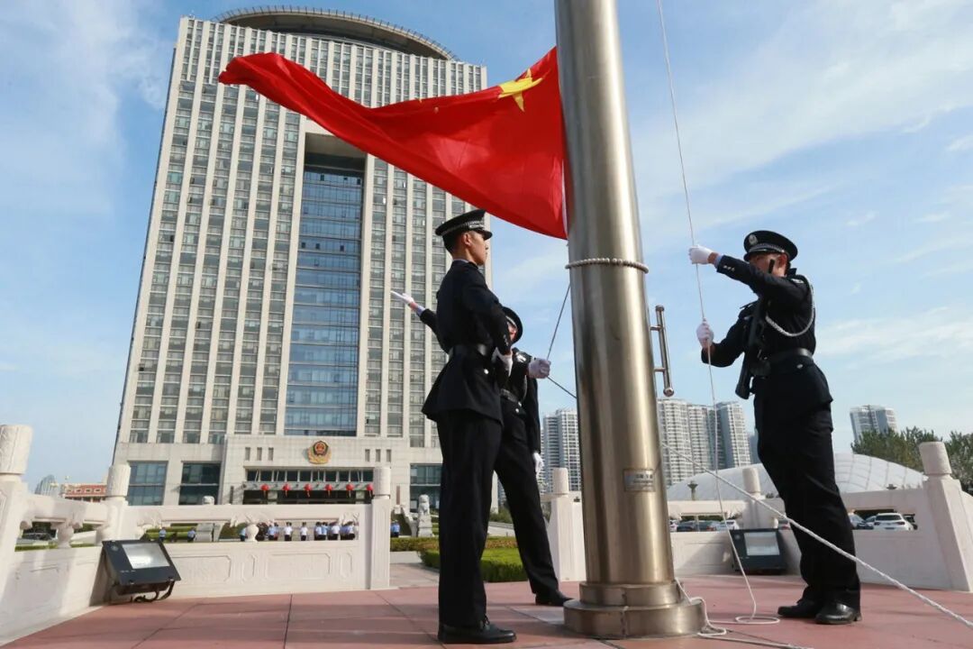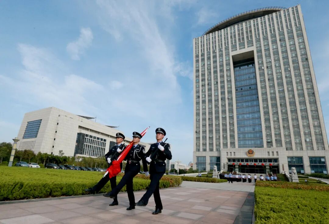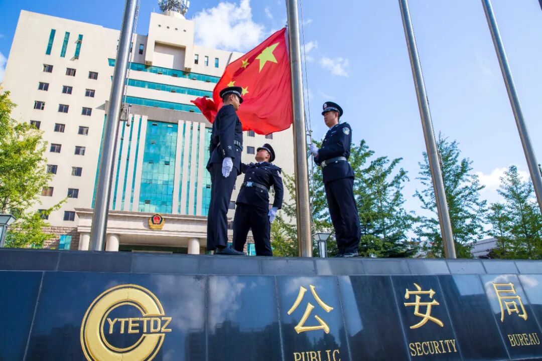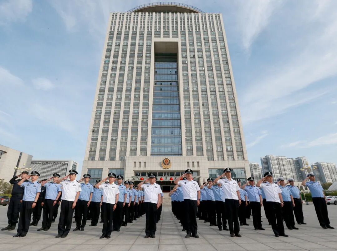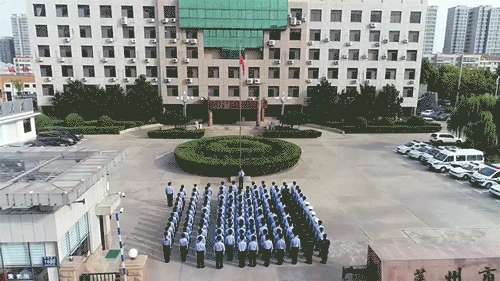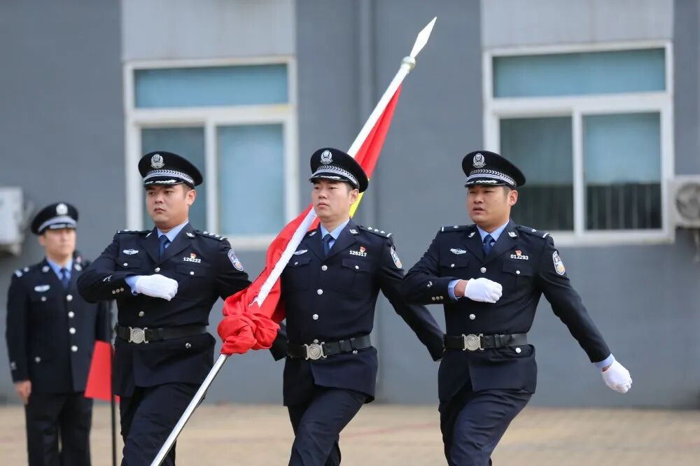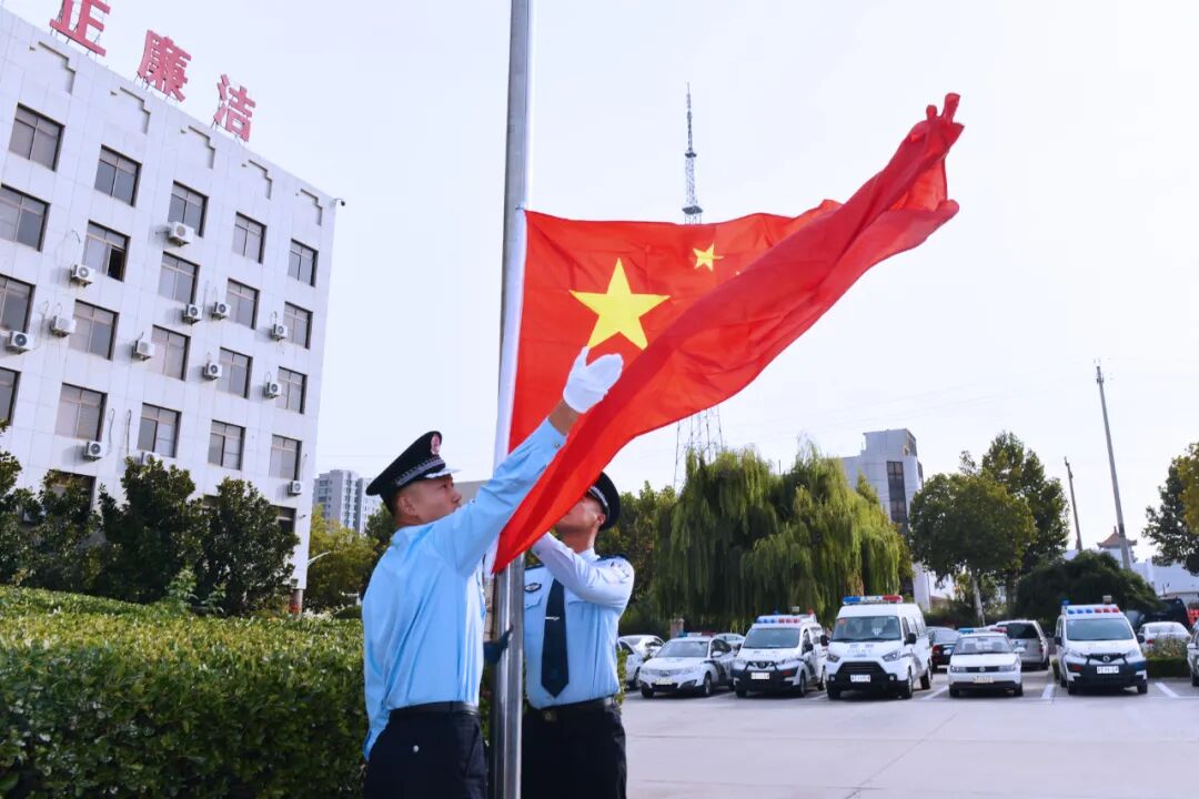 全體民警警容嚴整、莊嚴肅立,向國旗敬禮,