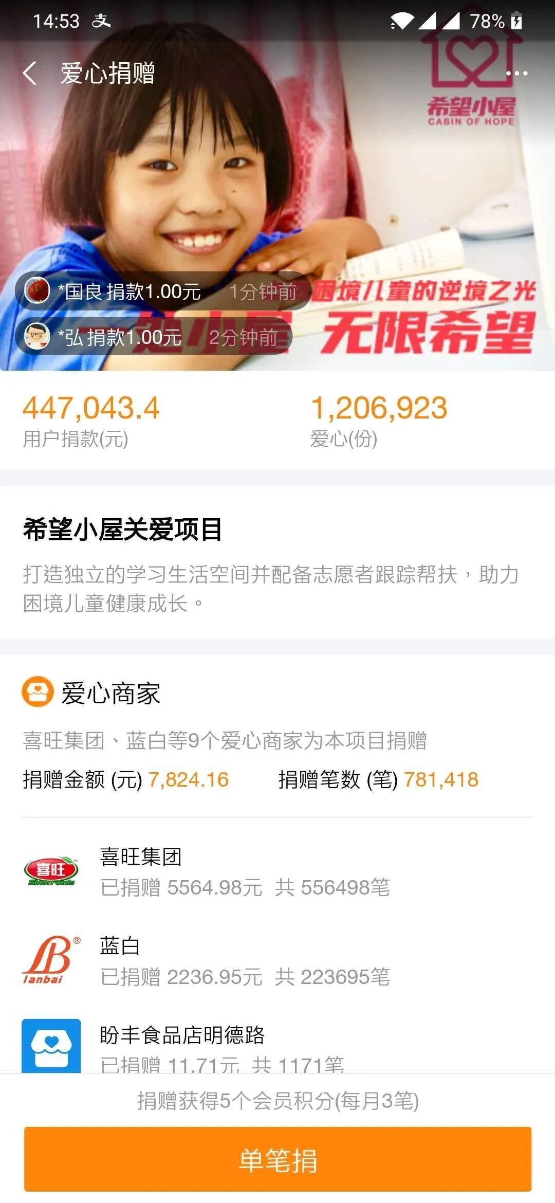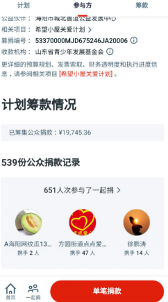 項(xiàng)目啟動(dòng)以來,組織化募資240萬元、社會(huì)化募資145萬元,完成市內(nèi)建設(shè)和對(duì)外援助三年計(jì)劃所需全部資金的81.7%。發(fā)動(dòng)各級(jí)團(tuán)組織、社會(huì)公益組織上線開通“希望小屋”公益項(xiàng)目,在全省創(chuàng)新推出支付寶“消費(fèi)捐”模式,喜旺集團(tuán)、藍(lán)白集團(tuán)已累計(jì)捐助77萬筆,帶動(dòng)支付寶用戶奉獻(xiàn)愛心120萬余次、捐款44.7萬元,讓人人公益、隨手公益、指尖公益在全社會(huì)蔚然成風(fēng)。