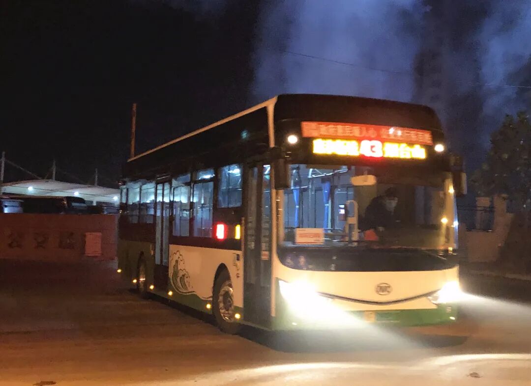 11月17日早晨5:30,康和新城公交場站,車頭佩戴大紅花的43路新車發(fā)出了第一個班次。