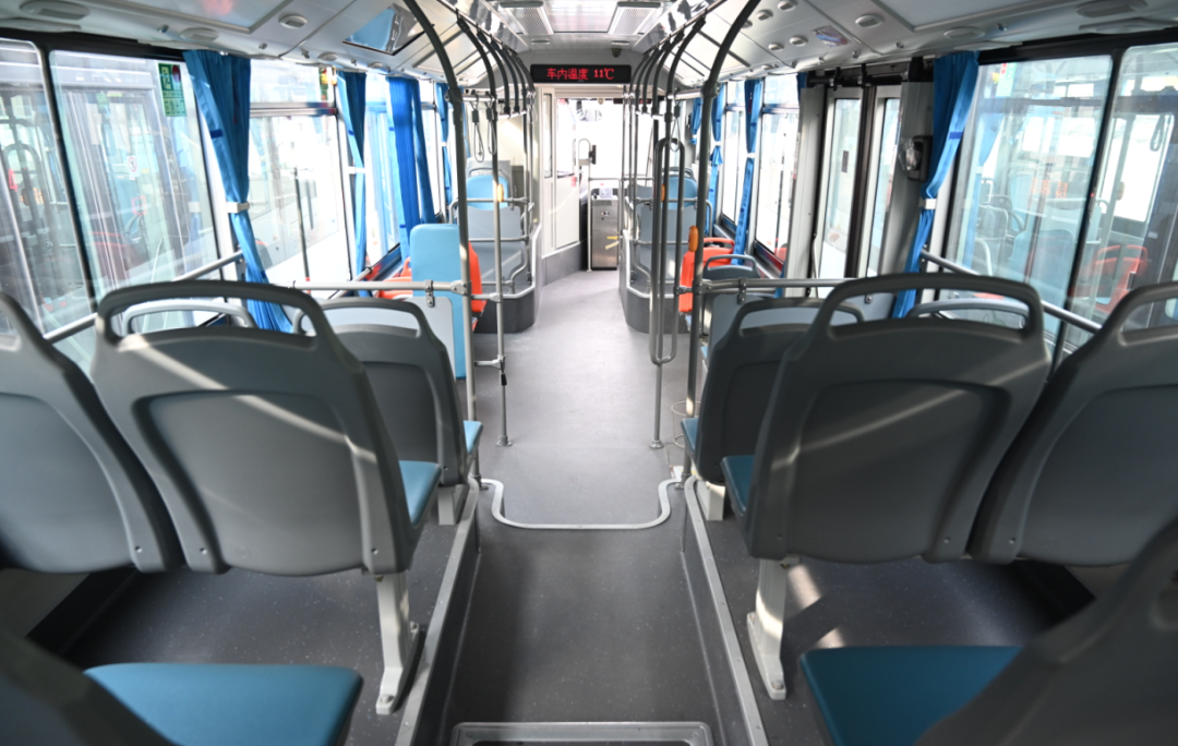 車內(nèi)加裝了下墜吊帶把手,高峰時段乘客可在車廂中輕松站穩(wěn)。還可實現(xiàn)中英文報站,為我市優(yōu)化外商環(huán)境助力。
