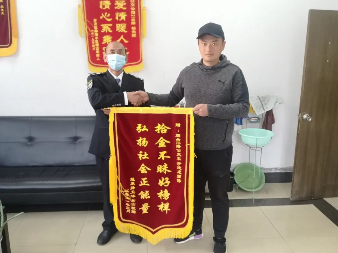 4月4日,煙臺市民孫女士委托家人帶著錦旗來到天馬相城場站,再次對216路駕駛員于建龍拾金不昧及場站工作人員的熱心幫助表示感謝。