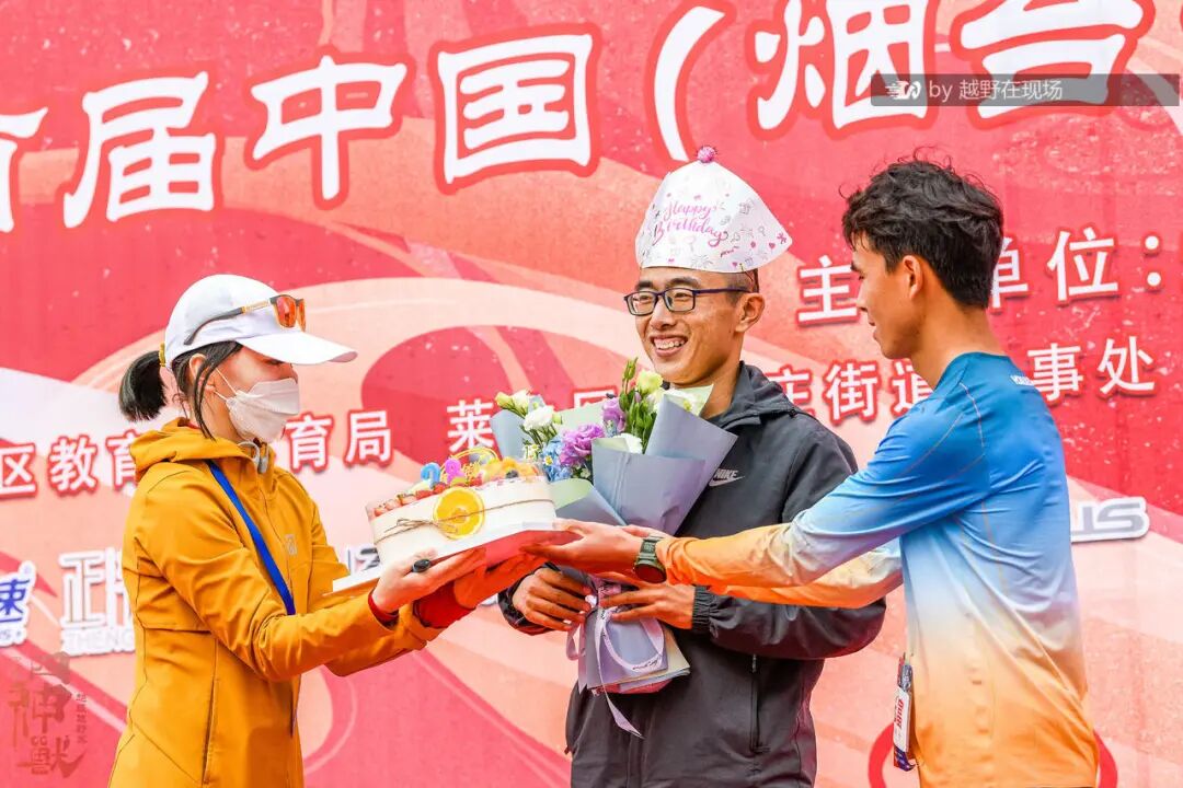 30公里男子前三分別是冠軍蒙光富,用時2小時43分14秒;亞軍王強,用時3小時16分16秒;季軍董鐵生,用時3小時18分59秒,同時恰逢季軍董鐵生生日,這樣的生日禮物定是意義非凡!組委會也貼心的準備了鮮花蛋糕,祝賀他生日快樂,越來越好!