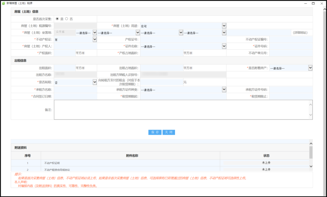 點擊“新增”按鈕,填寫房屋(土地)稅源信息,如下圖所示: