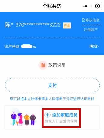 參保人綁定醫(yī)保個(gè)賬共濟(jì)家庭成員,是實(shí)現(xiàn)個(gè)賬共濟(jì)繳費(fèi)的前提,可通過“煙臺市醫(yī)療保障局”微信公眾號設(shè)立(變更、取消)個(gè)賬共濟(jì)賬戶。