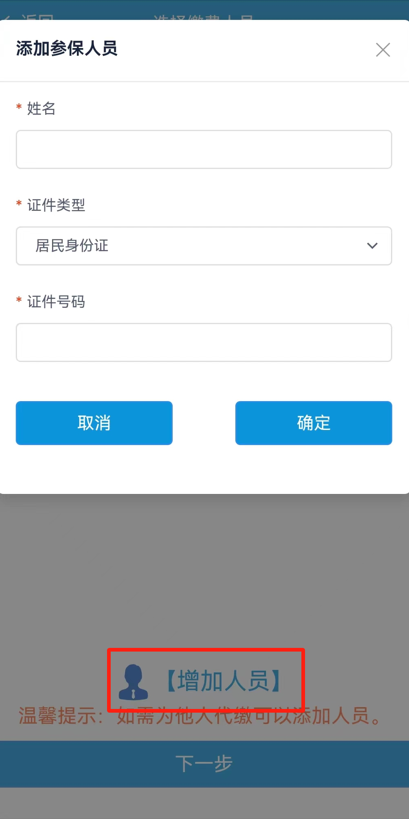 點(diǎn)擊“添加家庭成員”,正確填寫信息,綁定家庭成員,每個(gè)參保人最多可綁定7名近親屬。