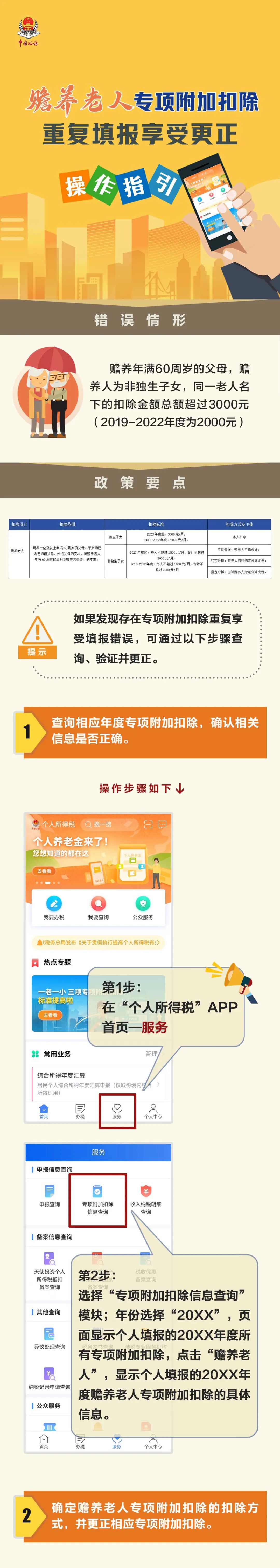 近日,稅務(wù)部門通過大數(shù)據(jù)分析梳理出了個(gè)稅專項(xiàng)附加扣除信息中存在的問題。其中:子女教育、贍養(yǎng)老人及3歲以下嬰幼兒照護(hù)容易發(fā)生重復(fù)填報(bào)享受,下面一起來看看贍養(yǎng)老人專項(xiàng)附加扣除重復(fù)填報(bào)享受如何更正: