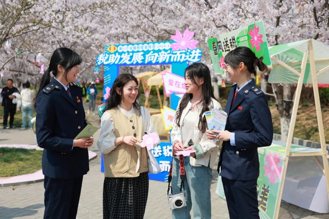 國家稅務總局煙臺高新技術產(chǎn)業(yè)開發(fā)區(qū)稅務局走進煙臺龍湖國際海岸櫻花節(jié),以“春風送稅 ‘櫻’你而美”為主題,搭建稅務文創(chuàng)攤開展“有獎答題”活動,在春光爛漫中為納稅人繳費人送上稅惠“大禮包”。(圖/文 蔡曉雨)