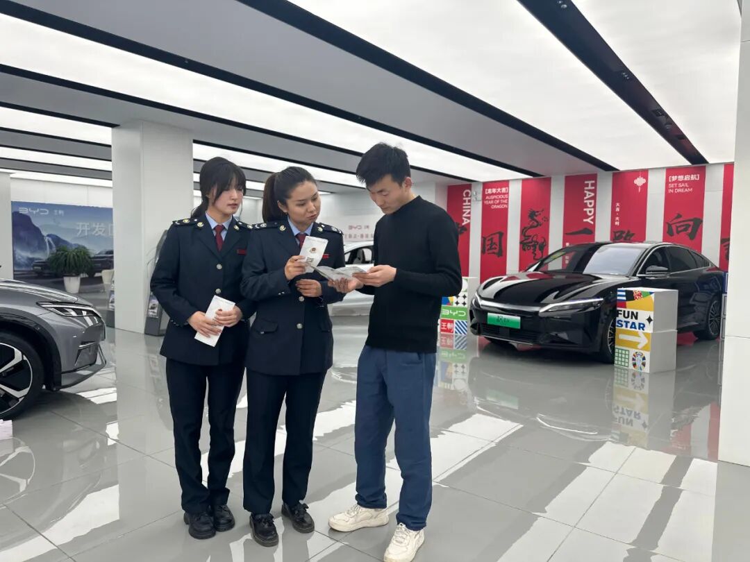 國家稅務總局煙臺經(jīng)濟技術開發(fā)區(qū)稅務局在第33個全國稅收宣傳月期間走進萬達廣場汽車銷售展廳,為進廳選購汽車的納稅人詳細介紹了車輛購置稅有關政策,將稅費優(yōu)惠政策精準送達納稅人手中。(圖/文 薛源)