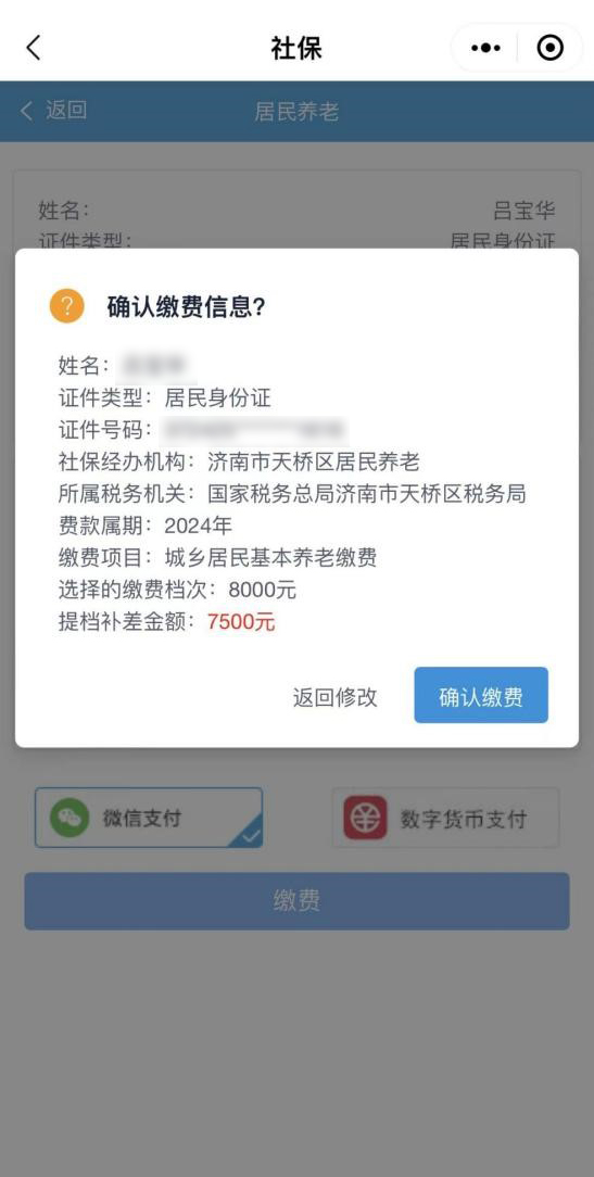 (3)系統(tǒng)彈窗提示確認(rèn)繳費(fèi)信息,確認(rèn)各項(xiàng)信息無誤后點(diǎn)擊“確認(rèn)繳費(fèi)”按鈕,系統(tǒng)自動(dòng)跳轉(zhuǎn)到付款界面,完成繳費(fèi)即可。
