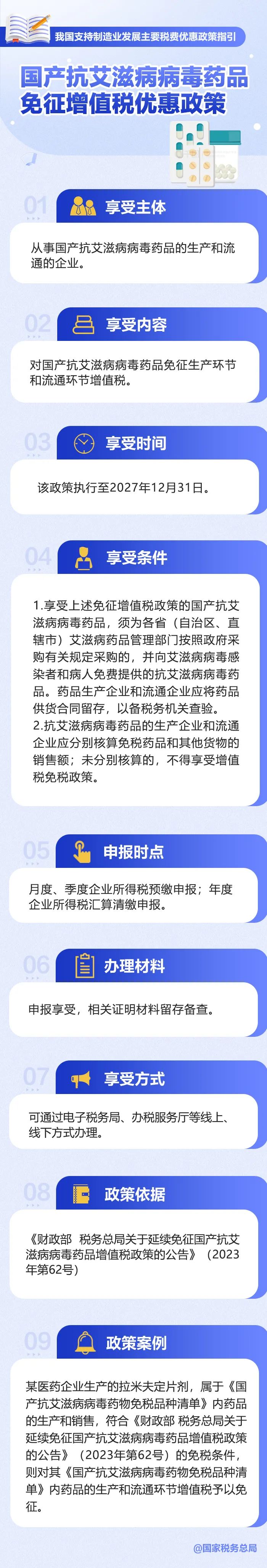 一圖了解:國(guó)產(chǎn)抗艾滋病病毒藥品免征增值稅優(yōu)惠政策
