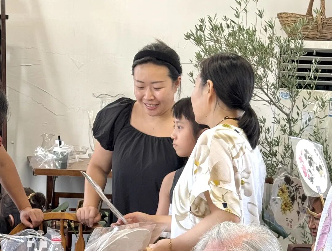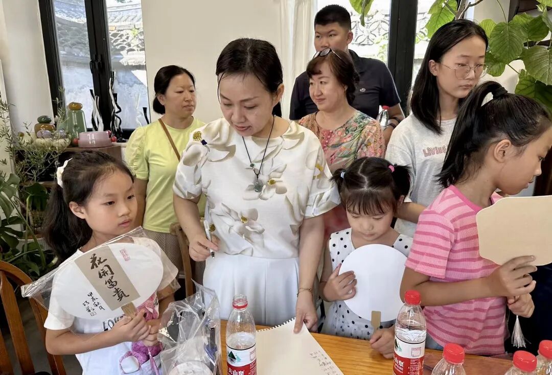 當(dāng)天,王壽松老師、劉華老師、孫巧莉老師還給每位參加活動(dòng)的孩子送上手繪扇子,并親筆書寫祝福。