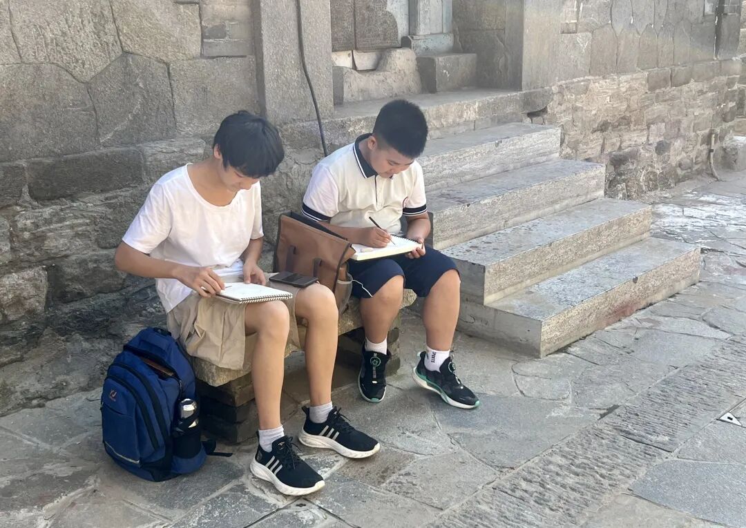 “生活中從來不缺美,缺的是發(fā)現(xiàn)美的眼睛。” 王壽松老師對(duì)孩子們說,所城里是煙臺(tái)城市的發(fā)源地,保留下來的房屋、照壁、石板路、拴馬石、古樹,處處都蘊(yùn)含著美,需要大家仔細(xì)觀察感受,并通過寫生、再創(chuàng)作的方法,講述煙臺(tái)的好故事。
