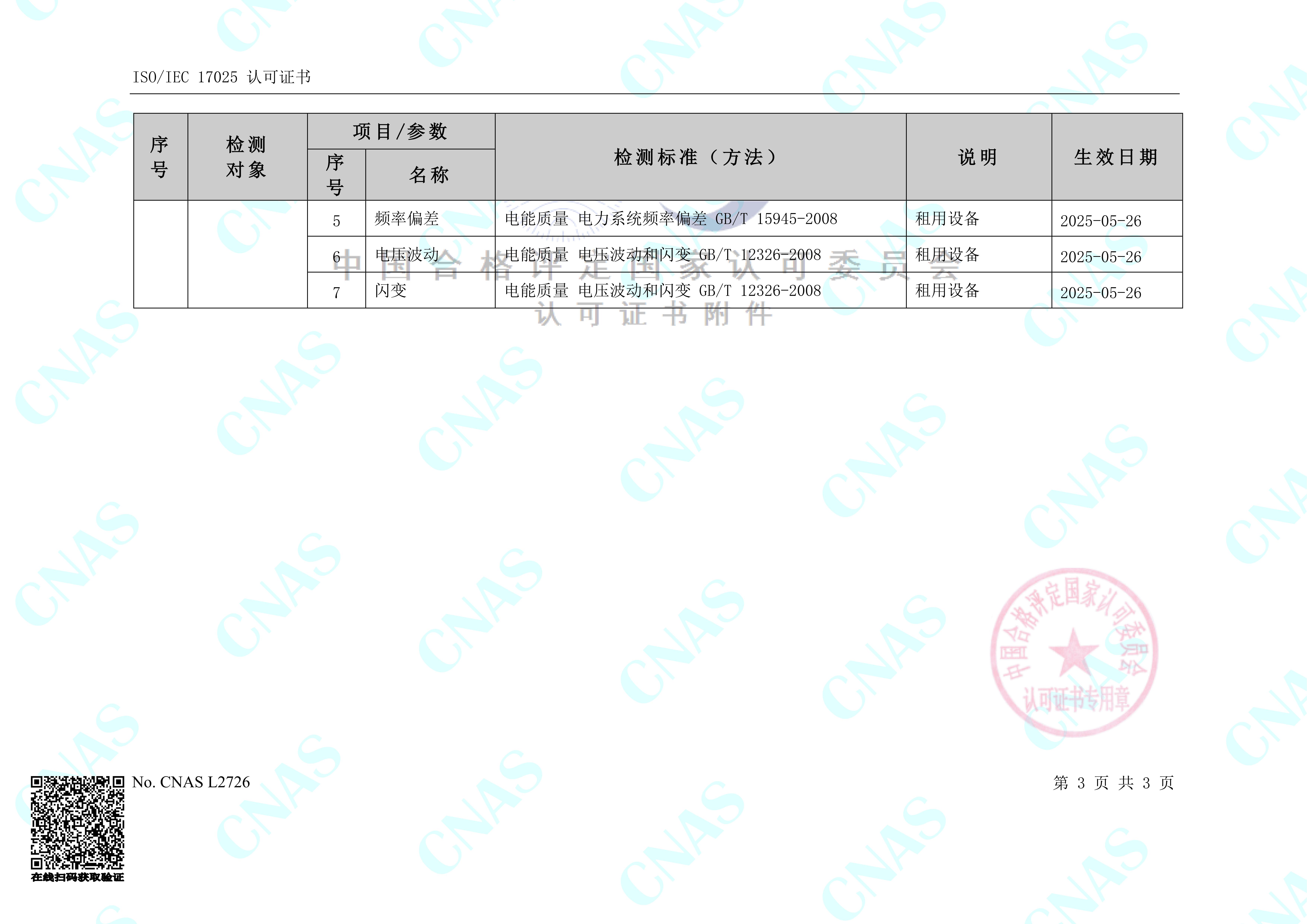 CNAS資質(zhì)是國(guó)內(nèi)乃至國(guó)際檢測(cè)領(lǐng)域高度認(rèn)可的標(biāo)志,獲得此項(xiàng)資質(zhì)對(duì)清潔能源檢測(cè)中心是一次重大飛躍,標(biāo)志著檢測(cè)中心在電能質(zhì)量檢測(cè)領(lǐng)域的管理水平和檢測(cè)技術(shù)已達(dá)到國(guó)家標(biāo)準(zhǔn),成功躋身國(guó)家認(rèn)可實(shí)驗(yàn)室行列。清潔能源檢測(cè)中心憑借此資質(zhì)在行業(yè)內(nèi)脫穎而出,公信力得到極大提升,不僅能夠參與更多的技術(shù)研討會(huì)議,與頂尖的檢測(cè)機(jī)構(gòu)建立聯(lián)系,還可以共享最新的檢測(cè)技術(shù)與行業(yè)信息,不斷優(yōu)化自身檢測(cè)流程與方法,始終保持在行業(yè)技術(shù)前沿。