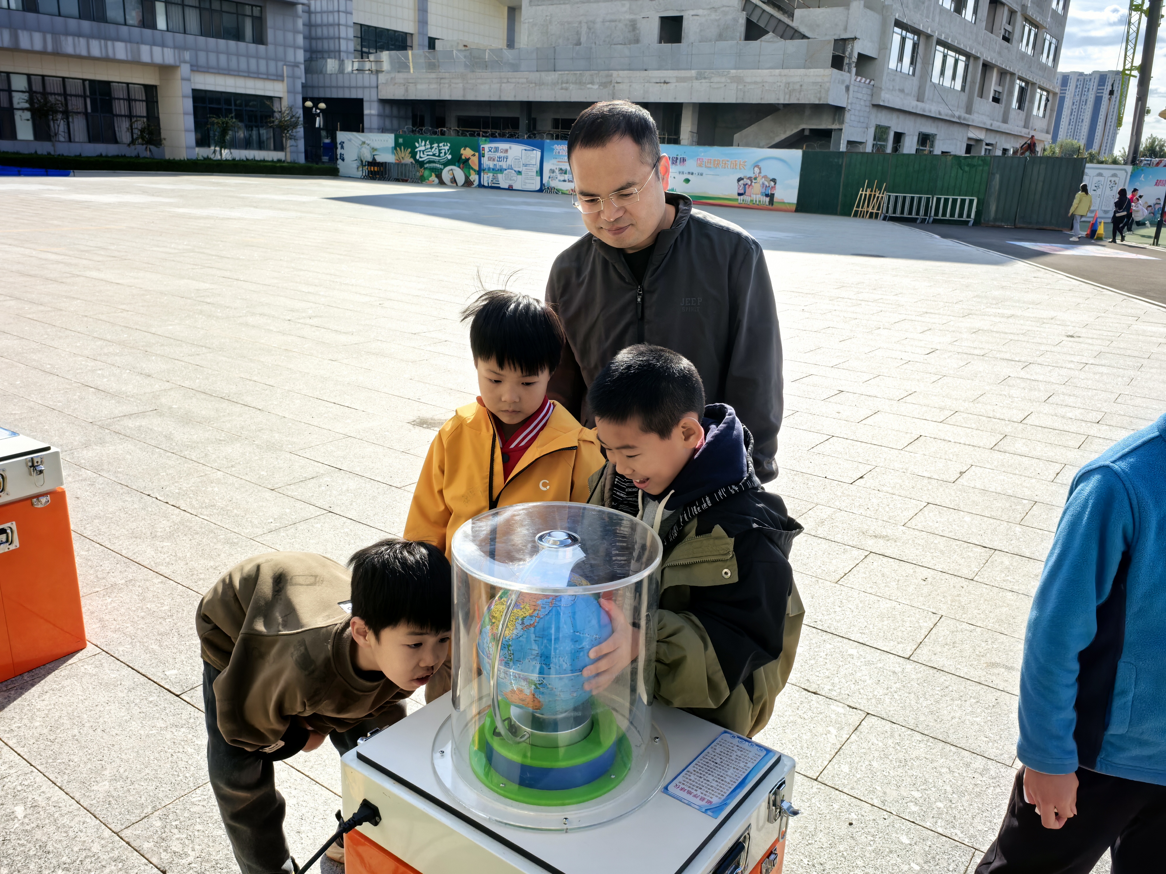 科普大篷車充分發(fā)揮流動(dòng)科技館作用,將“窺視無窮”、“磁懸浮地球儀”等十余件科普設(shè)備依次陳列,讓孩子們互動(dòng)體驗(yàn),使抽象的科學(xué)原理具象化,進(jìn)一步感受科學(xué)技術(shù)的神奇。