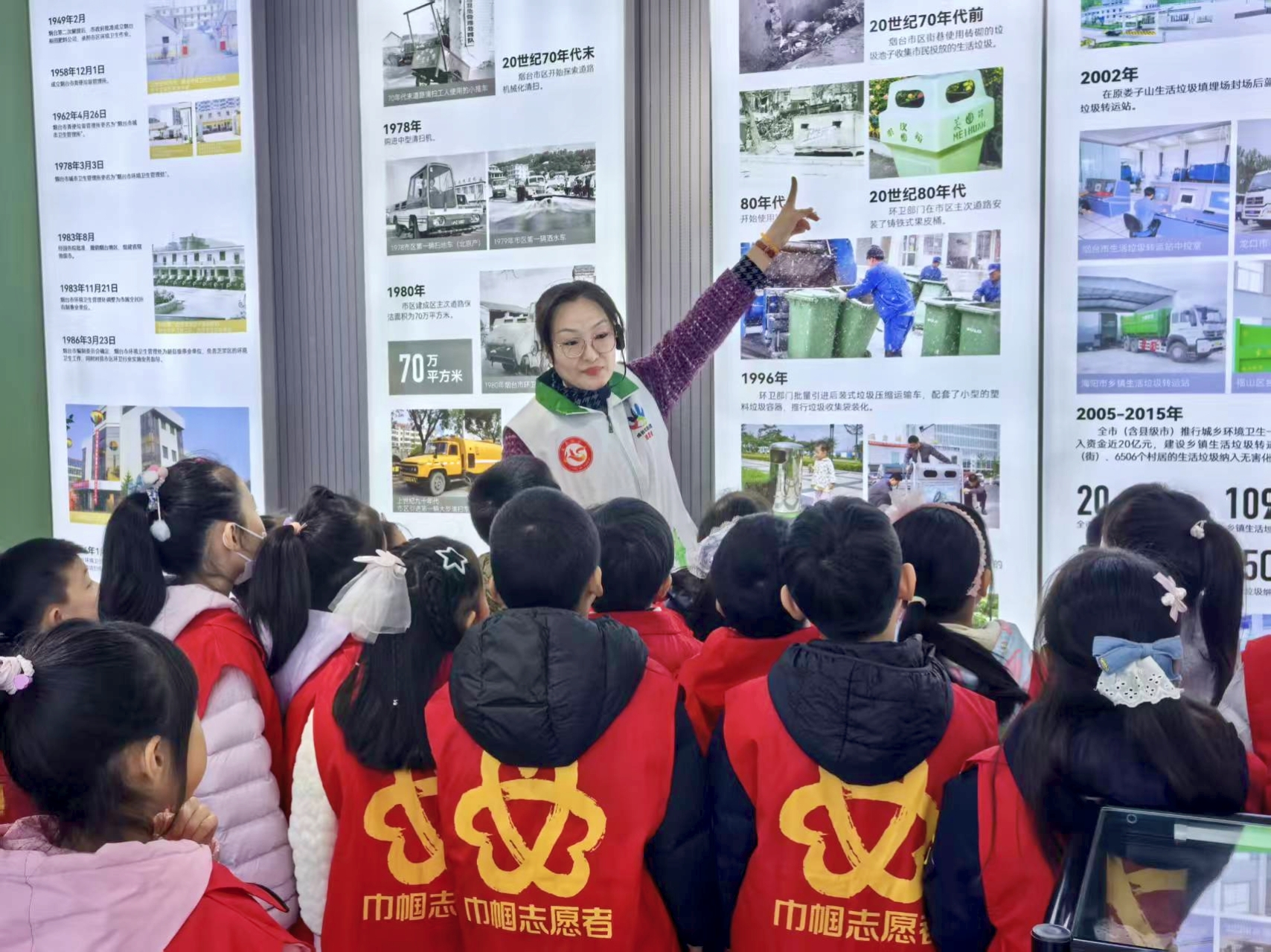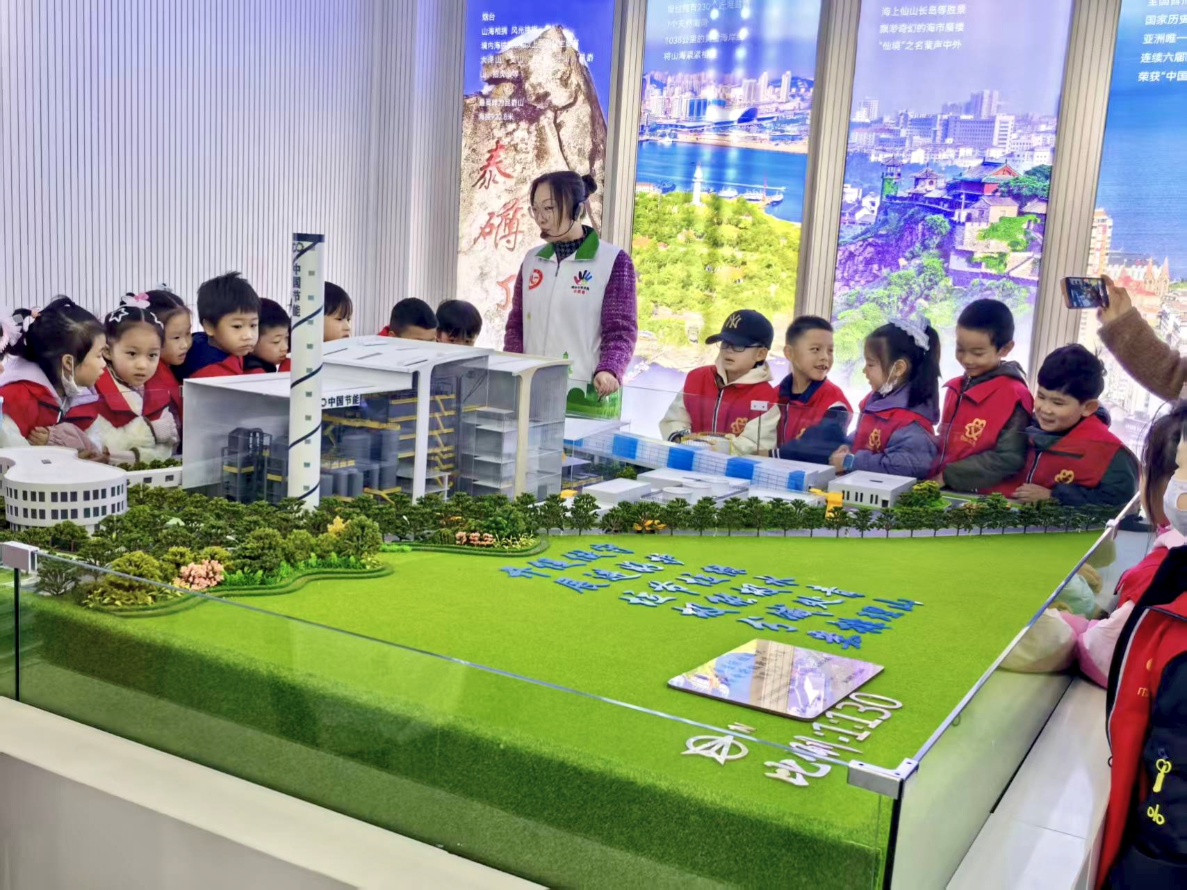 與此同時(shí),煙臺(tái)市垃圾分類(lèi)科普基地迎來(lái)了通伸小學(xué) 1 年級(jí)的小朋友。在講解員帶領(lǐng)下,孩子們首先通過(guò)垃圾焚燒處理廠沙盤(pán)模型,直觀了解垃圾焚燒發(fā)電的全過(guò)程 —從其他垃圾運(yùn)輸進(jìn)廠、到焚燒發(fā)電、煙氣凈化等環(huán)節(jié)演示讓抽象的處理流程變得清晰易懂。隨后,大家在垃圾分類(lèi)科普展板前駐足,展板以圖文并茂的形式,詳細(xì)介紹可回收物、廚余垃圾、有害垃圾和其他垃圾的劃分標(biāo)準(zhǔn)與處理方式,講解員結(jié)合生活實(shí)例逐一講解,孩子們聽(tīng)得格外認(rèn)真。現(xiàn)場(chǎng)還設(shè)置互動(dòng)環(huán)節(jié),孩子們與機(jī)器人小寶的趣味問(wèn)答更讓大家快速掌握分類(lèi)要點(diǎn)。此次活動(dòng)讓環(huán)保種子在沉浸式體驗(yàn)中生根,推動(dòng) “綠色低碳” 理念融入校園生活。