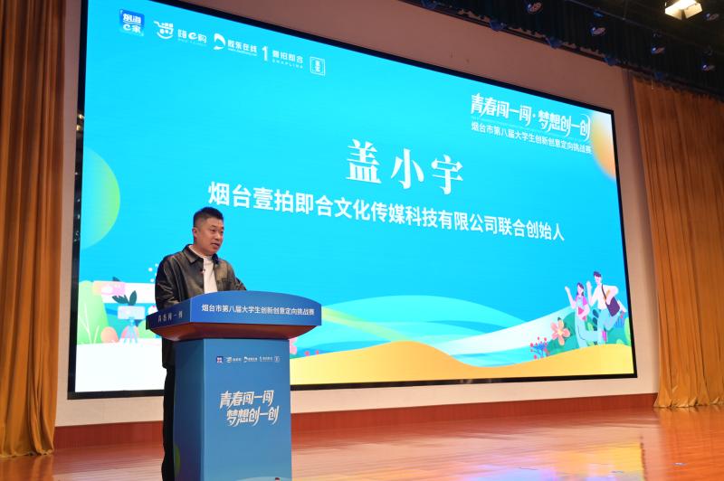 煙臺壹拍即合文化傳媒科技有限公司聯(lián)合創(chuàng)始人蓋小宇在致辭中表示,作為賽事承辦單位,他們將開放行業(yè)資源與實踐經(jīng)驗,邀請資深的行業(yè)導師參與評審與指導,努力將同學們天馬行空的創(chuàng)意,切實轉化為落地生根的項目。