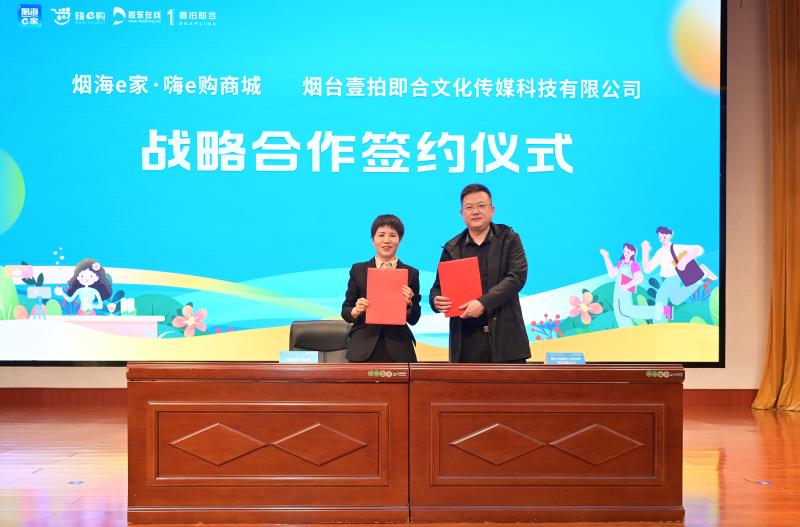 啟動儀式現(xiàn)場亮點紛呈,在青春洋溢的《我們一起嚕啦蕾》舞蹈表演后,煙海e家·嗨e購商城與煙臺壹拍即合文化傳媒科技有限公司完成戰(zhàn)略合作簽約。雙方將發(fā)揮各自資源優(yōu)勢,探索“媒體+電商+人才實踐”的新型運營模式,共同推動新媒體電商領域創(chuàng)新發(fā)展與人才培養(yǎng)。