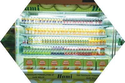 哈密瓜鮮果產(chǎn)業(yè)鏈平臺(tái)聯(lián)合推出的哈密瓜果汁、精釀啤酒等產(chǎn)品。