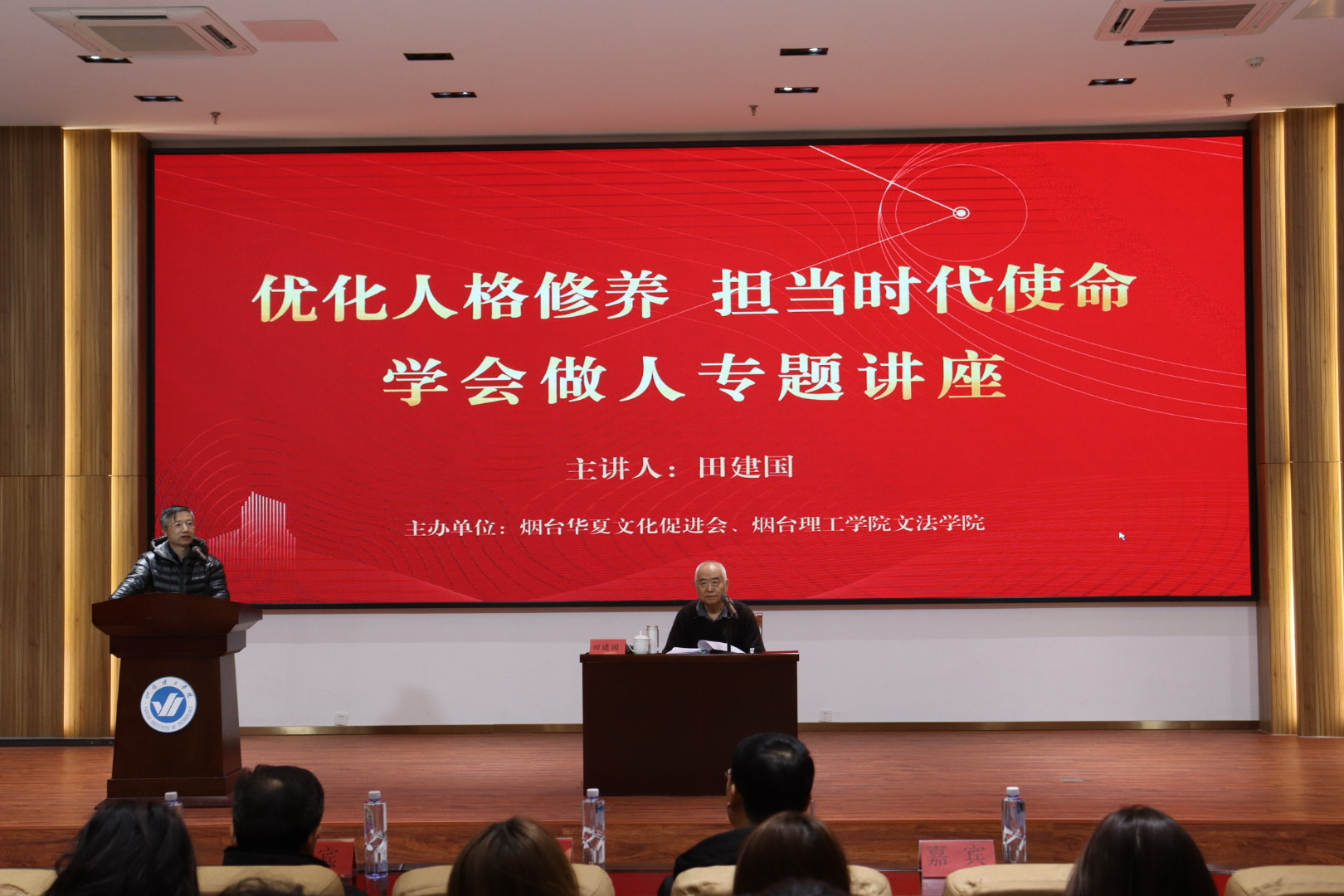 主題講座在煙臺理工學院報告廳舉辦,煙臺理工學院副校長、文法學院院長蘇春景主持活動,資深教育專家田建國教授以“修高尚人格·做時代新人”為題,為師生帶來一場人格修養(yǎng)專題的精神盛宴。田教授深耕高等教育數(shù)十載,兼具深厚理論積淀與豐富實踐經(jīng)驗,他圍繞“為何做人、如何做人、做什么樣的人”三大命題,鮮明提出“規(guī)范做人守底線、標準做人修品德、境界做人拓格局、小事做人踐初心”的具體要求,旁征博引中華優(yōu)秀傳統(tǒng)文化精髓,輔以典型案例深入淺出闡釋人格修養(yǎng)的本質(zhì),勉勵青年學子樹立正確“三觀”,爭做“有理想、敢擔當、能吃苦、肯奮斗”的新時代青年,引發(fā)在場師生強烈共鳴。