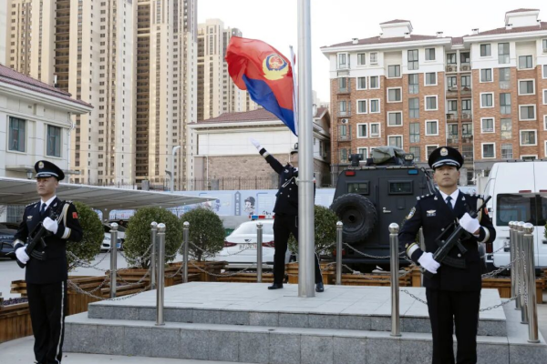 膠東在線1月12日訊(通訊員 郭健 實(shí)習(xí)編輯 單煜媛)為慶祝第六個(gè)中國(guó)人民警察節(jié),不斷凝聚奮進(jìn)力量、筑牢忠誠(chéng)警魂,1月10日上午,煙臺(tái)市公安局高新分局莊重舉行升警旗儀式。區(qū)公安分局黨委書(shū)記、局長(zhǎng)劉強(qiáng)出席儀式并講話,黨委副書(shū)記、政委潘春山主持儀式,黨委班子成員和除值班執(zhí)勤外的全體民輔警參加儀式。