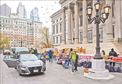 美國密歇根大學(xué)近日發(fā)布的調(diào)查顯示,美國消費(fèi)者信心指數(shù)持續(xù)下降,高物價(jià)和收入下滑令消費(fèi)者感到沮喪。圖為在美國紐約拍攝的一處免費(fèi)食物發(fā)放點(diǎn)。 新華社發(fā) |