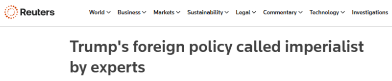 路透社(Reuters)網(wǎng)站近日發(fā)表署名文章,批評(píng)美國(guó)政府外交政策帶有的鮮明的帝國(guó)主義色彩。