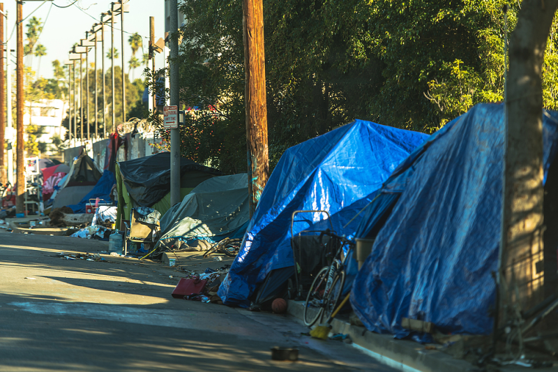 △美國(guó)無(wú)家可歸者帳篷營(yíng)地(資料圖)