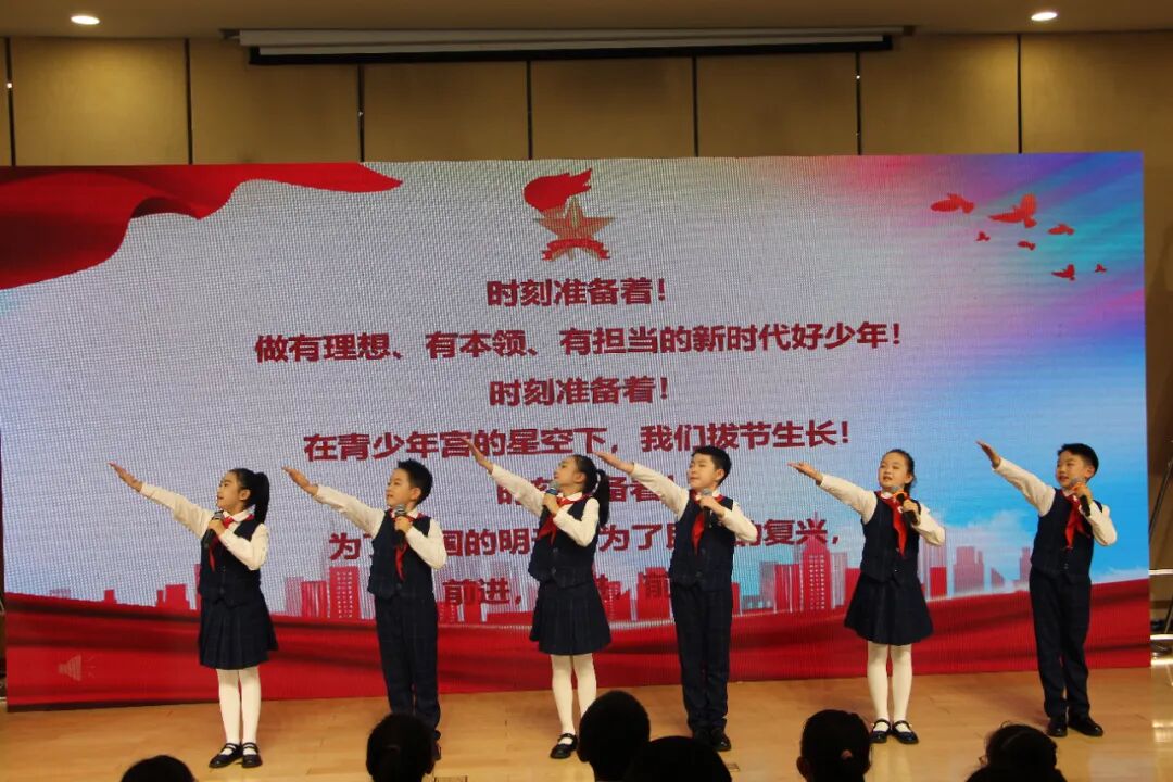 青少年宮六位隊員代表登臺獻詞,隊員們以真摯的語言、飽滿的情感,細數(shù)在青少年宮少先隊大集體中的成長收獲,分享學習路上的點滴美好,更以少年之姿立下錚錚誓言,展望未來以所學報效祖國、以實干勇?lián)姑,讓紅領巾的榮光在追夢路上熠熠生輝。