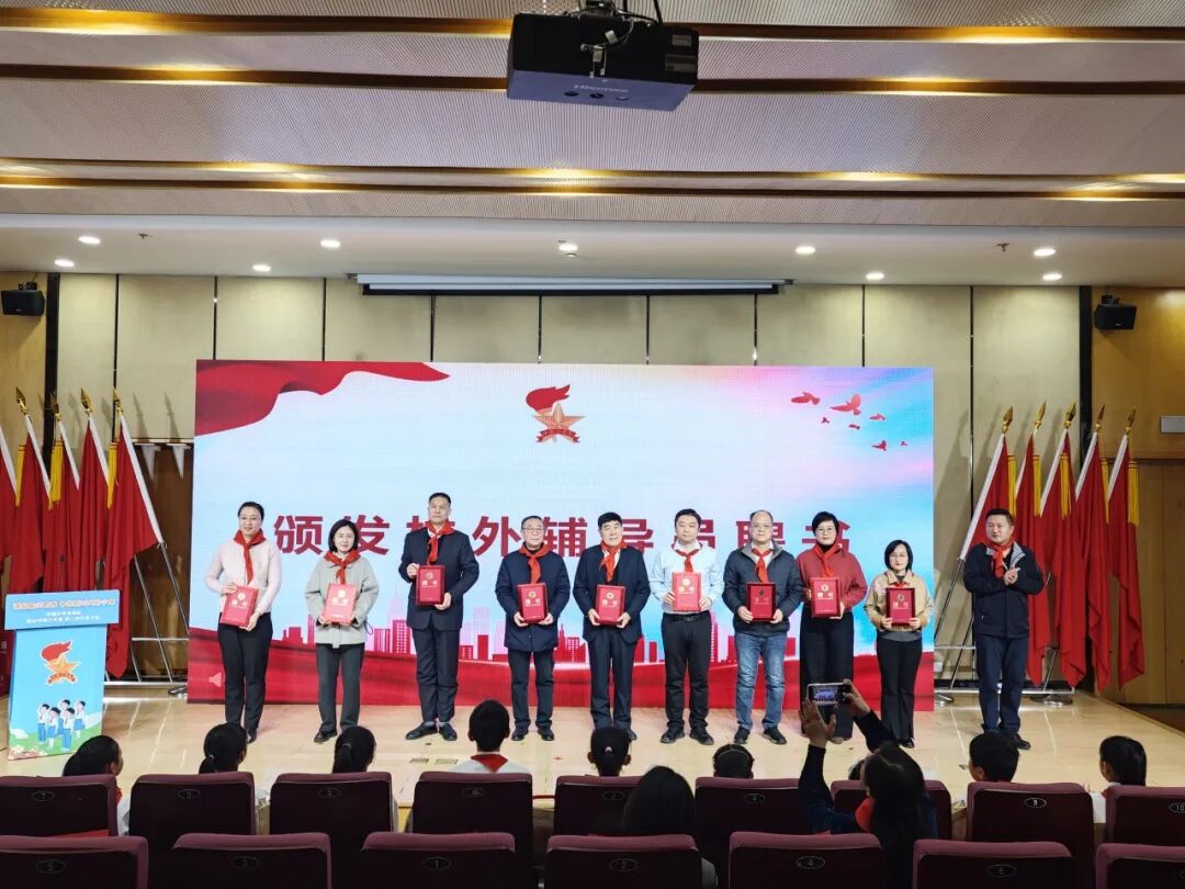 為匯聚校外育人合力,搭建多元成長平臺,會上還舉行了校外輔導員聘任儀式。青少年宮少工委主任為來自各行各業(yè)、熱心少年兒童事業(yè)的校外輔導員代表頒發(fā)聘書。一紙聘書,一份托付,未來他們將與宮內輔導員攜手,為隊員們的成長注入多元養(yǎng)分、打開廣闊視野,讓校外育人課堂更有溫度、更有力量。