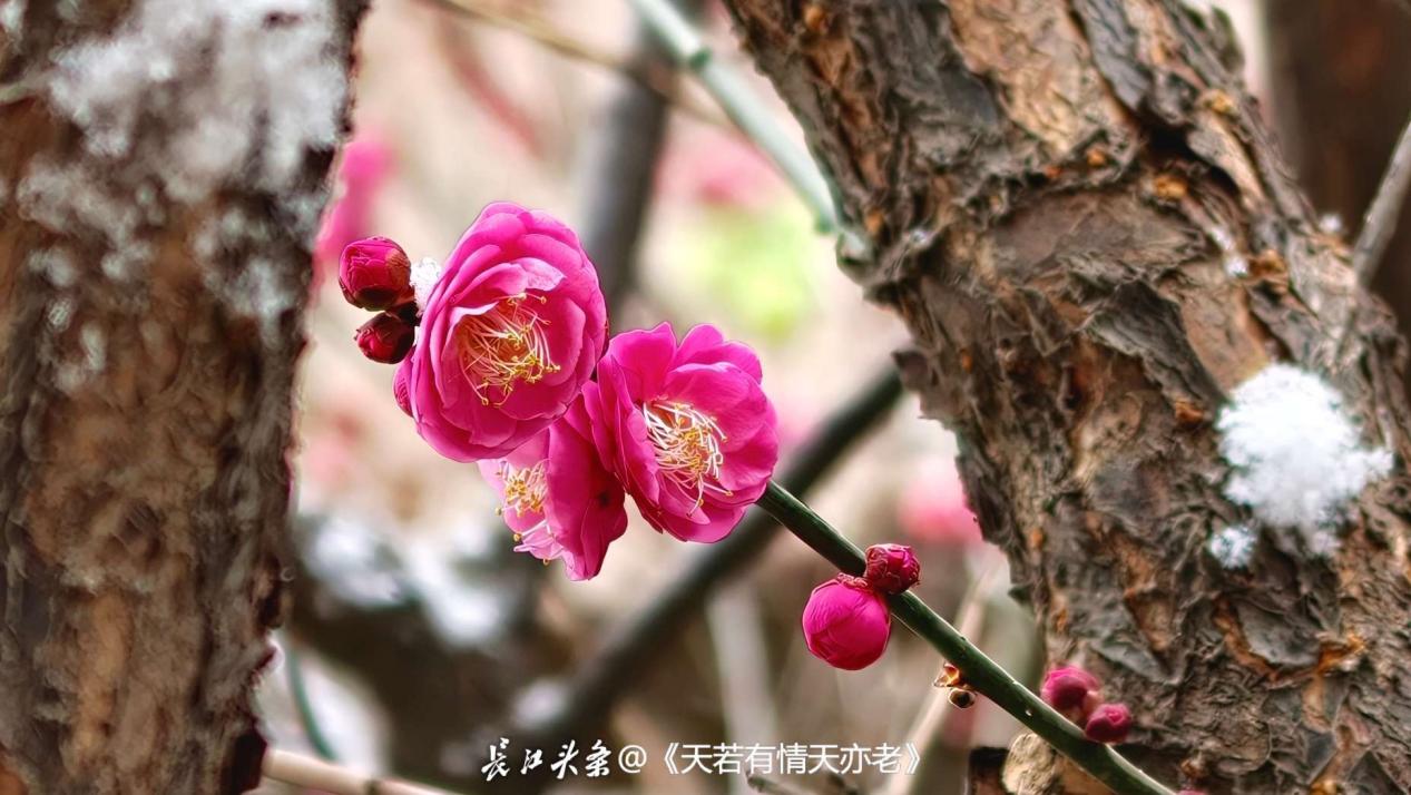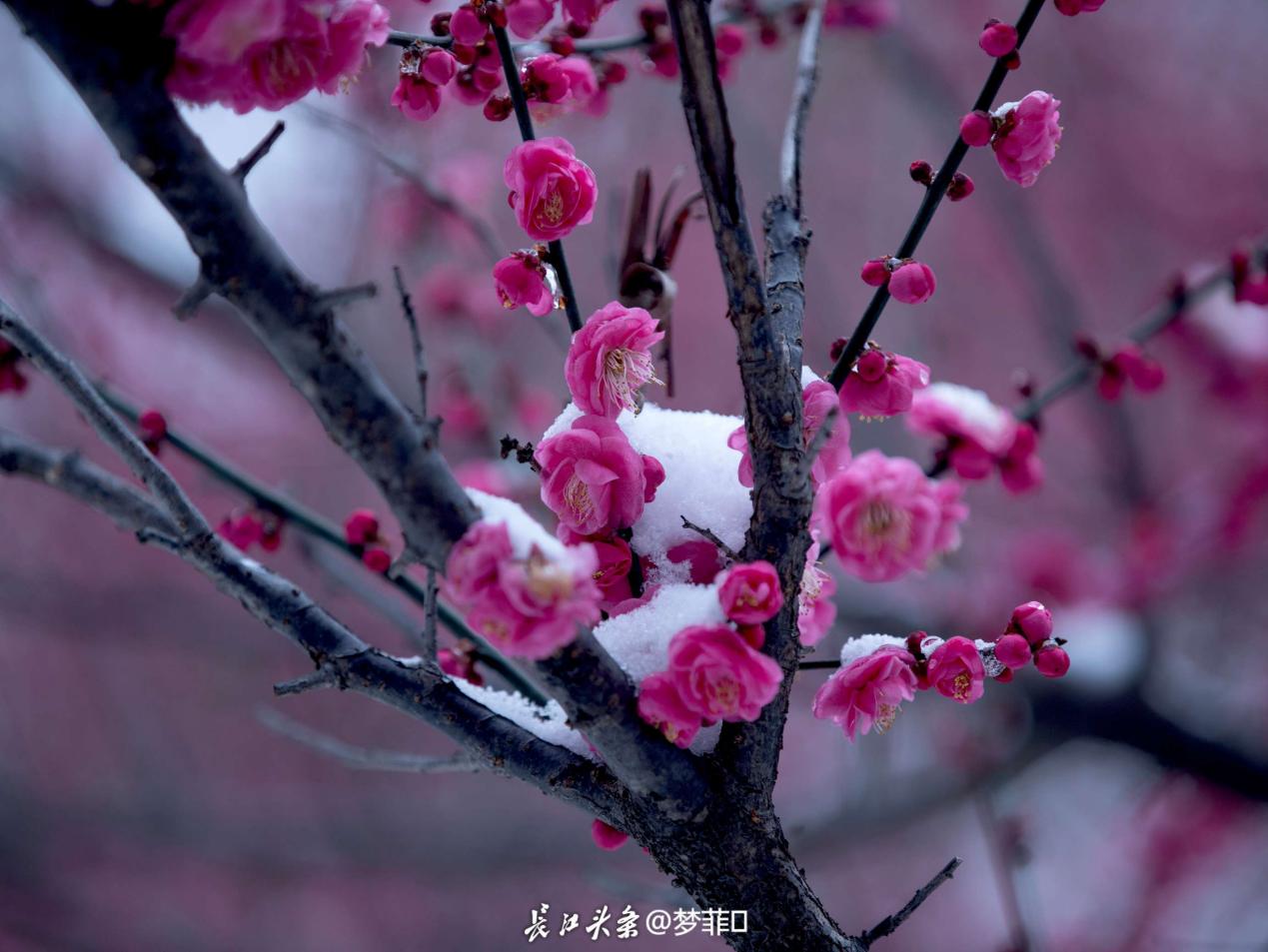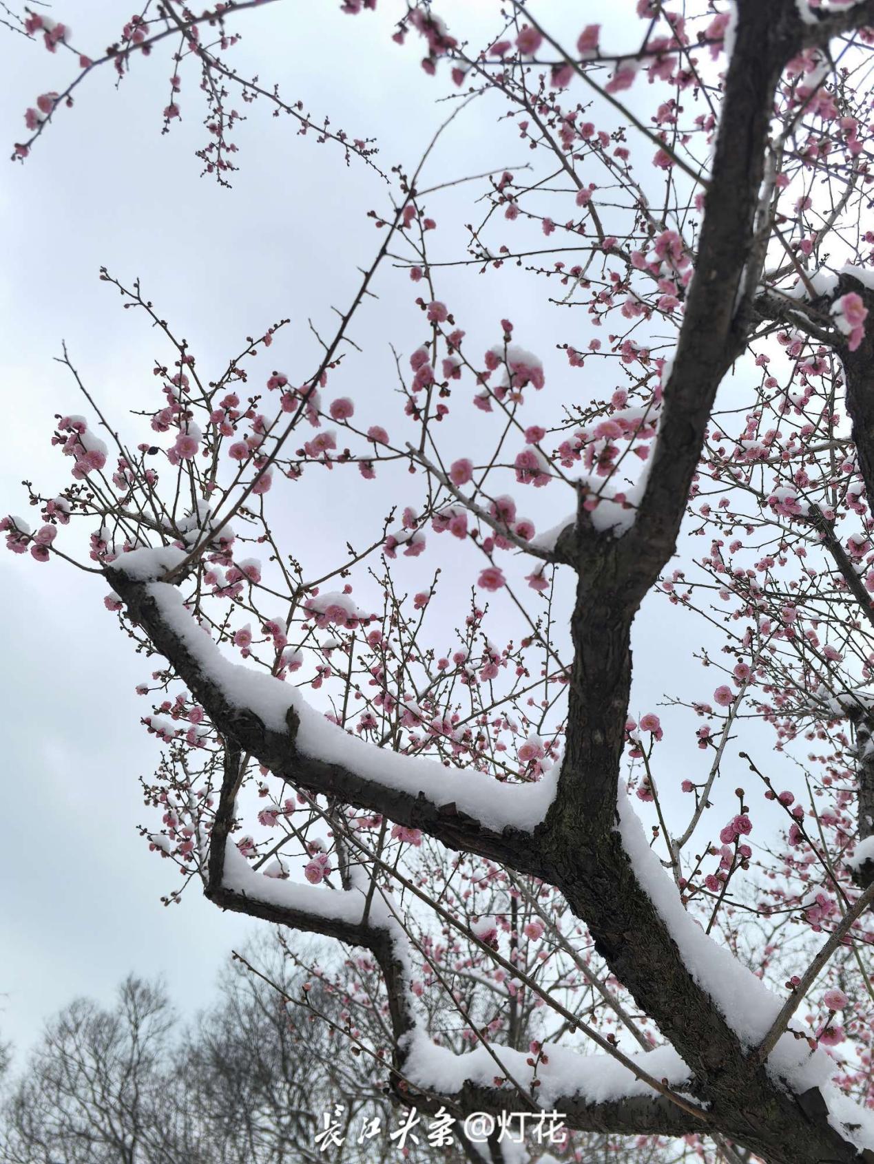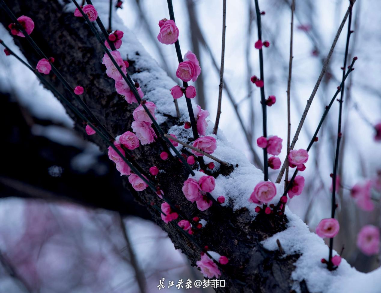 2、梅花花期集中在12月下旬至次年2月,當(dāng)前初雪與早梅相遇,正是打卡好時(shí)機(jī);