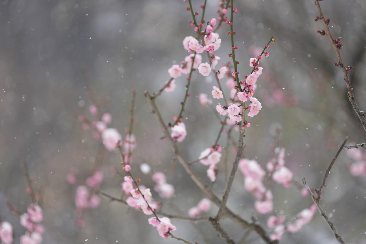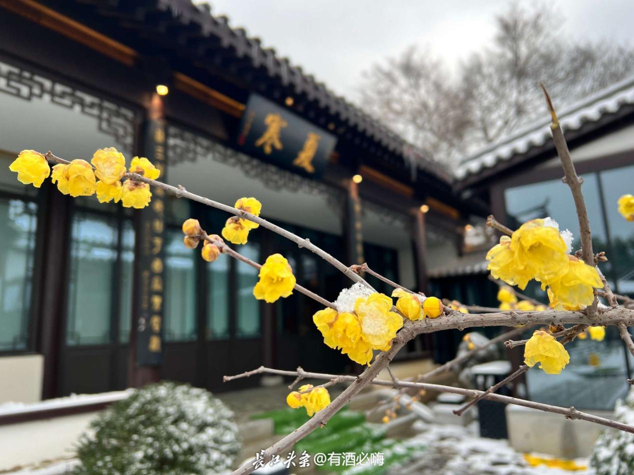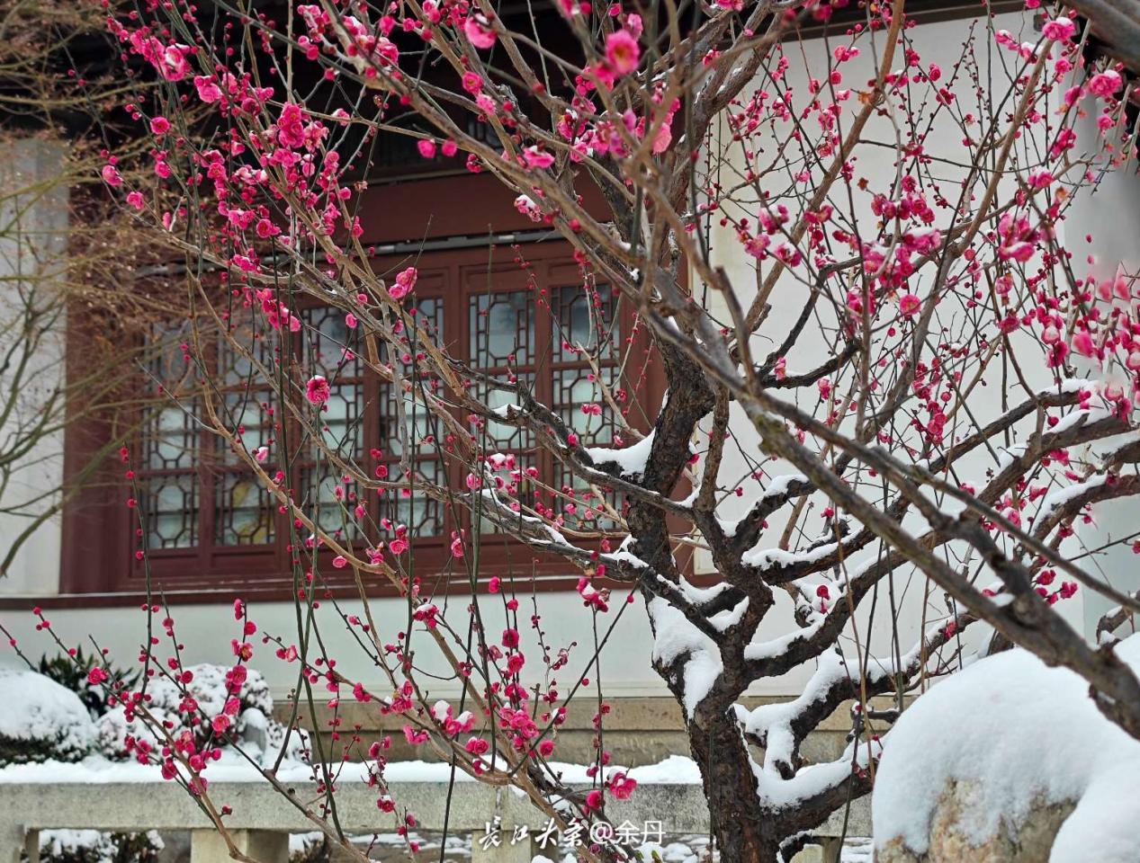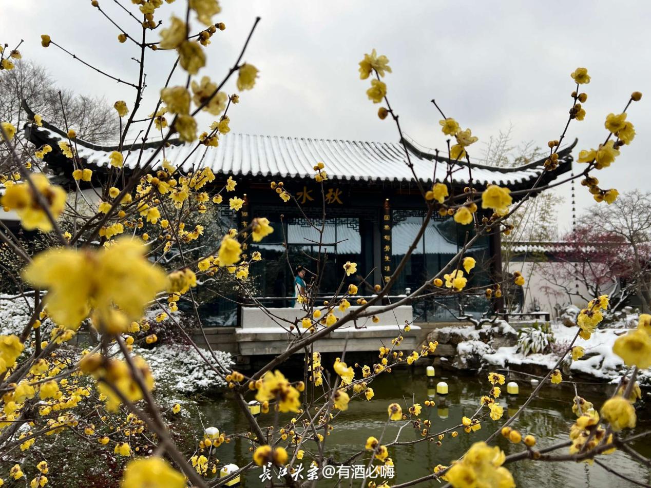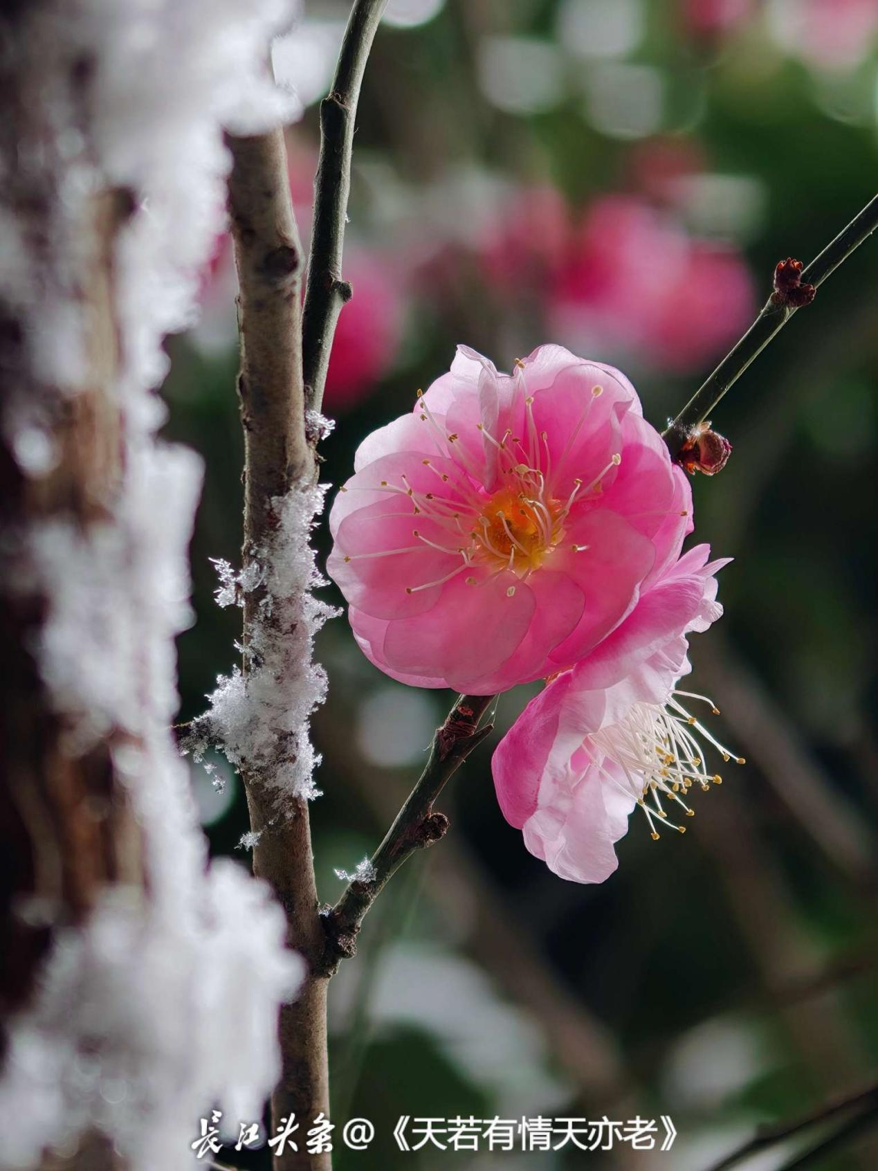 2、梅花花期集中在12月下旬至次年2月,當(dāng)前初雪與早梅相遇,正是打卡好時(shí)機(jī);