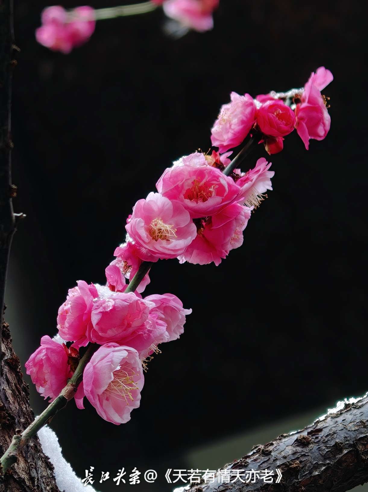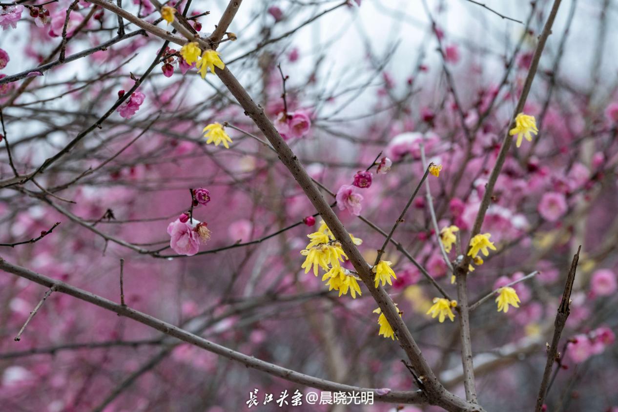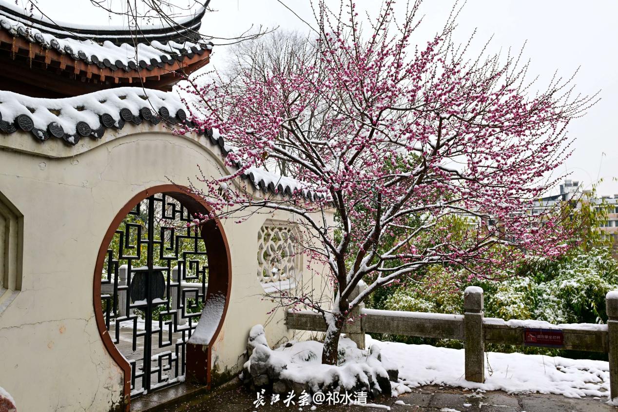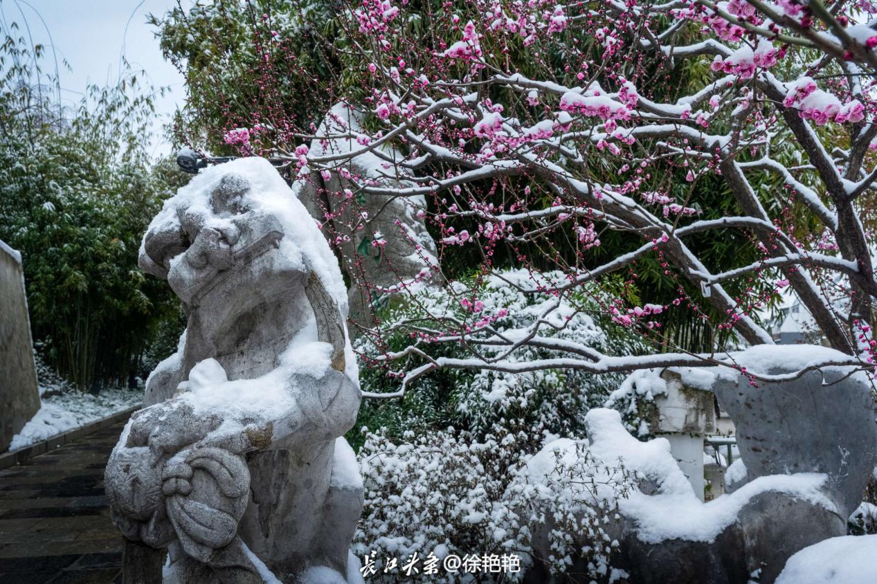 2、梅花花期集中在12月下旬至次年2月,當(dāng)前初雪與早梅相遇,正是打卡好時(shí)機(jī);