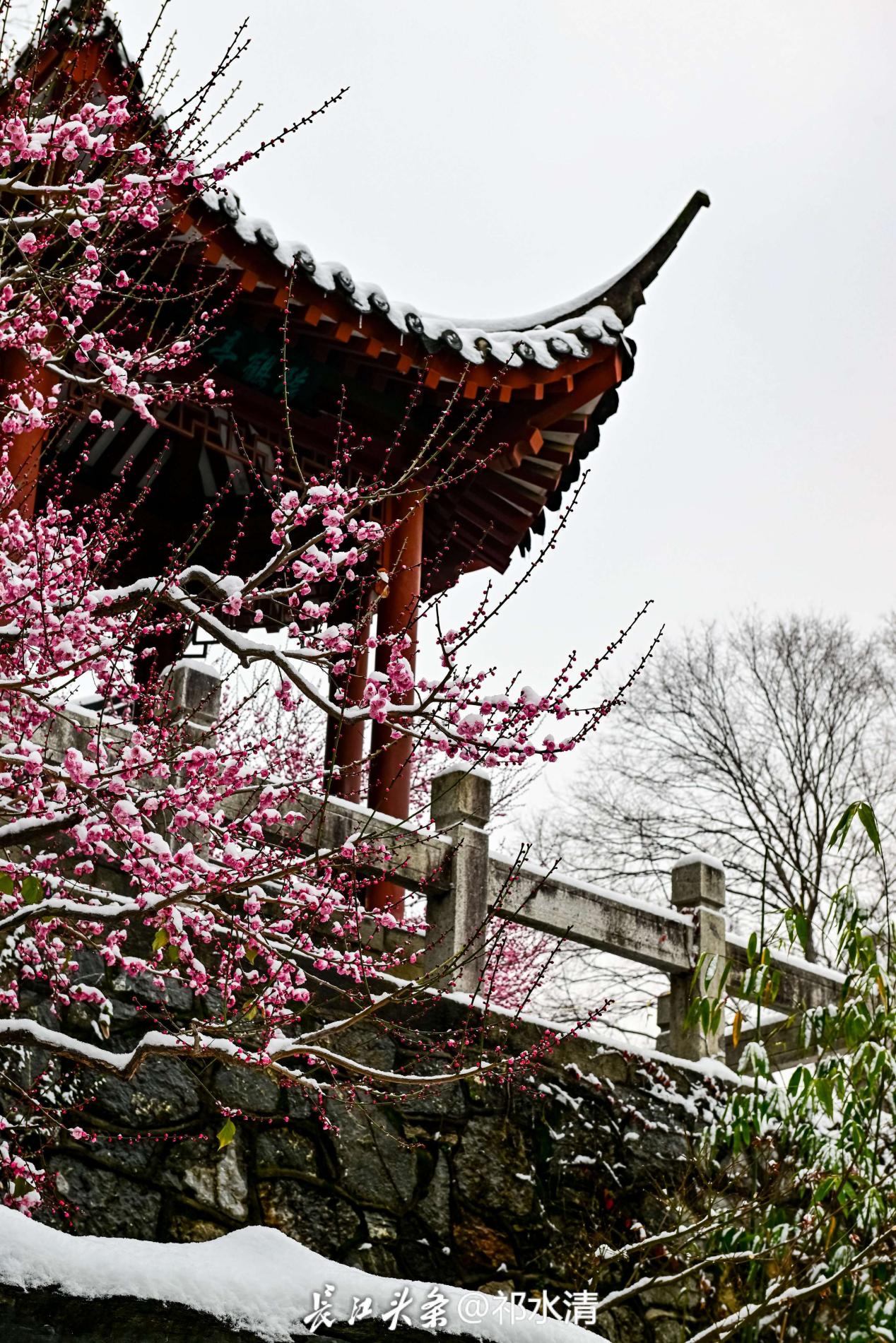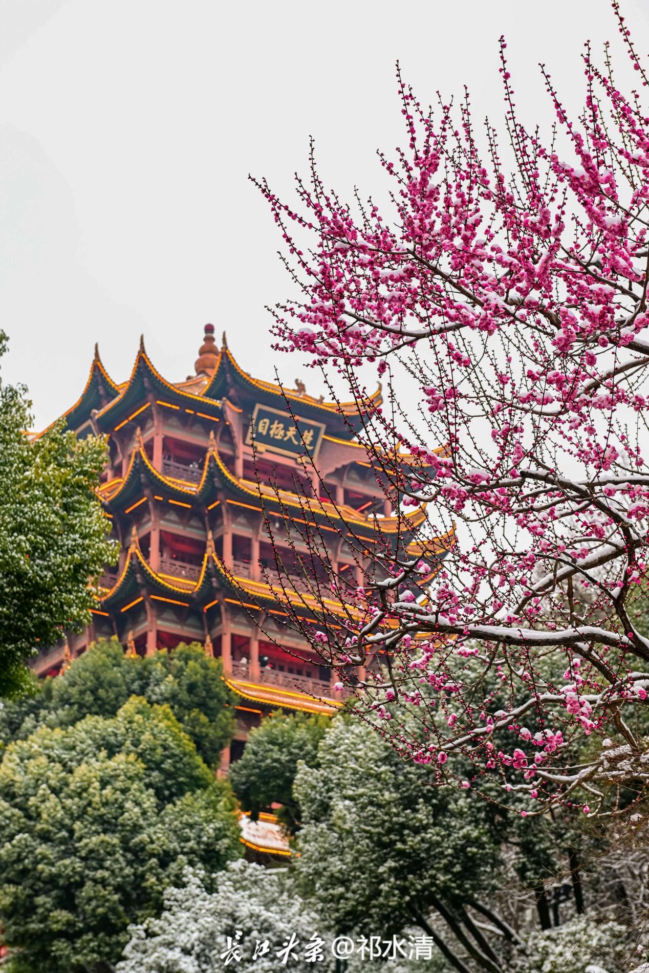 初雪紅梅映古樓。長(zhǎng)江網(wǎng)“綠鏡頭”攝影隊(duì) @祁水清 攝