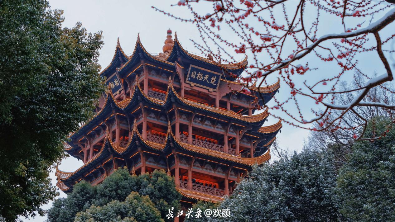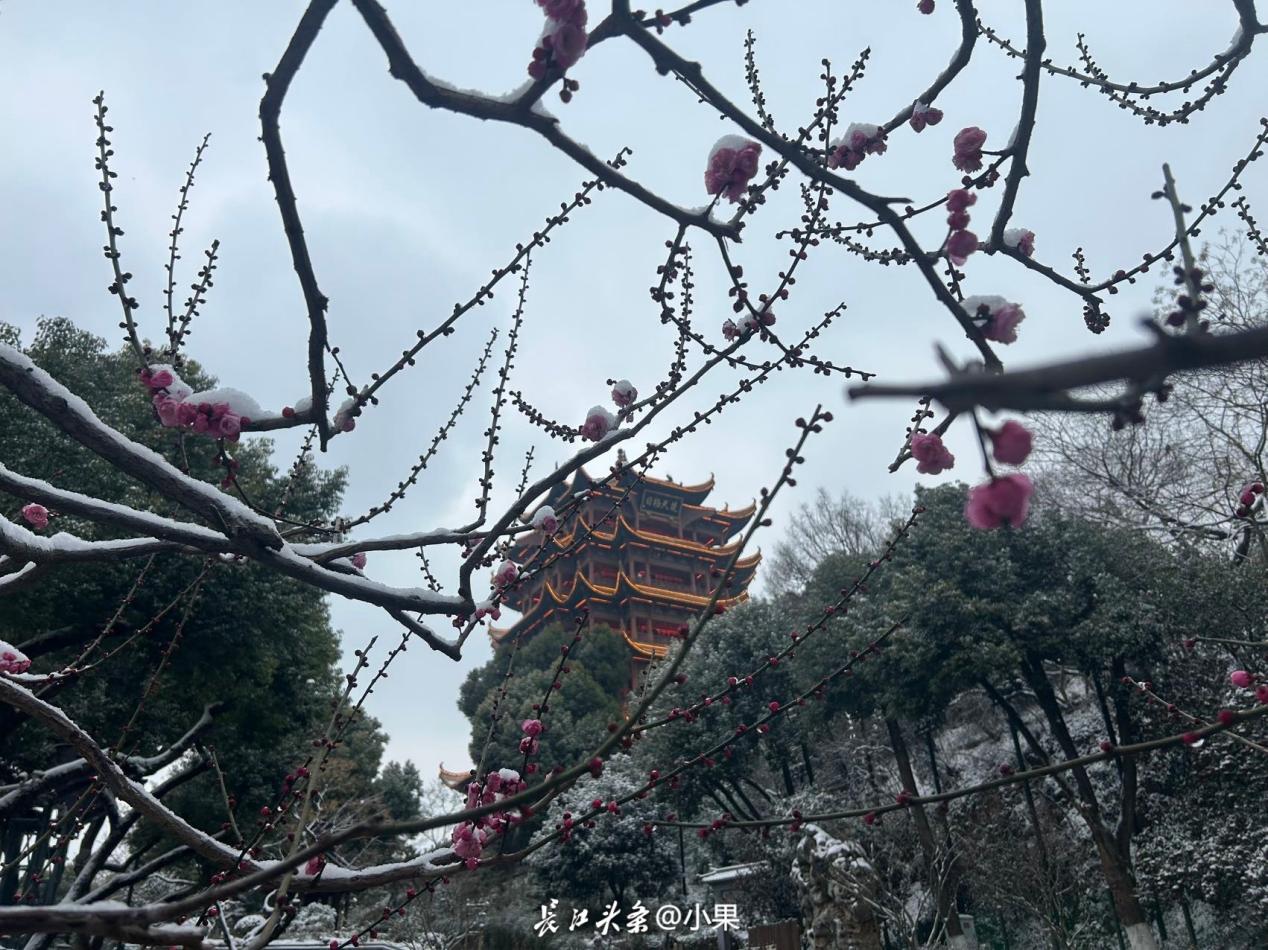 如今,這份文藝氣質(zhì)仍在延續(xù)。黃鶴樓公園在跨鶴亭旁采納專(zhuān)家建議,以“品”字形種植紅梅,襯托古亭之美,現(xiàn)已成為熱門(mén)打卡點(diǎn)。