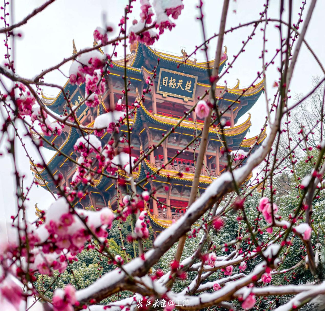 ·黃鶴樓公園:古樓飛檐映紅梅,登樓可賞江景梅色,詩(shī)意拉滿(mǎn)。地鐵5號(hào)線(xiàn)司門(mén)口黃鶴樓站直達(dá)。