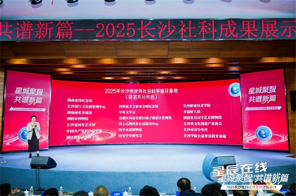 “長沙市第二十五屆哲學社會科學優(yōu)秀成果”“第二十一屆長沙社科優(yōu)秀人才”“第二十一屆長沙社科優(yōu)秀青年人才”“基層社科工作創(chuàng)新單位”等名單通過MG動畫形式逐一揭曉,64個市級普及基地、12家研究基地的耕耘成果得到充分肯定。