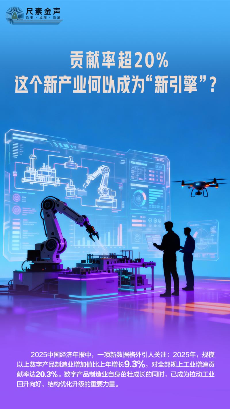 2025中國經(jīng)濟(jì)年報(bào)中,一項(xiàng)新數(shù)據(jù)格外引人關(guān)注:2025年,規(guī)模以上數(shù)字產(chǎn)品制造業(yè)增加值比上年增長9.3%,對全部規(guī)上工業(yè)增速貢獻(xiàn)率達(dá)20.3%。數(shù)字產(chǎn)品制造業(yè)自身茁壯成長的同時(shí),已成為拉動(dòng)工業(yè)回升向好、結(jié)構(gòu)優(yōu)化升級的重要力量。